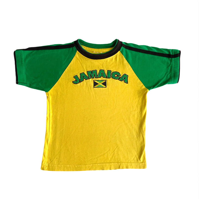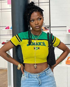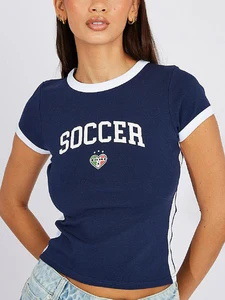 빈티지 미적 탑 녹색 여름 티셔츠 수 놓은 편지 패턴 짧은 소매 아기 배꼽 의류 레이디 도매