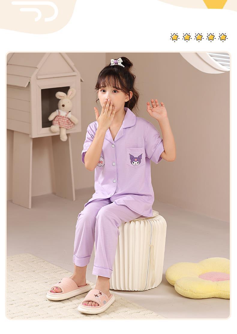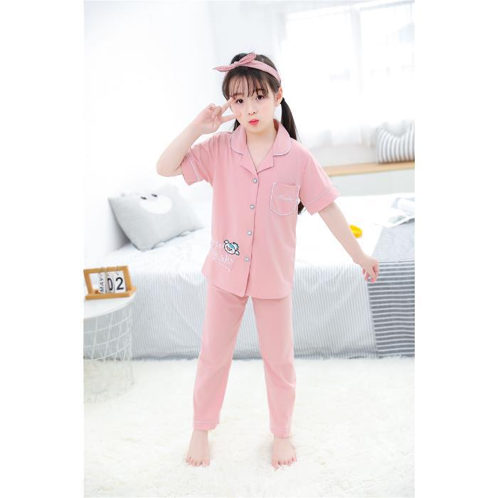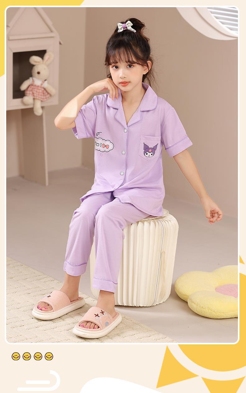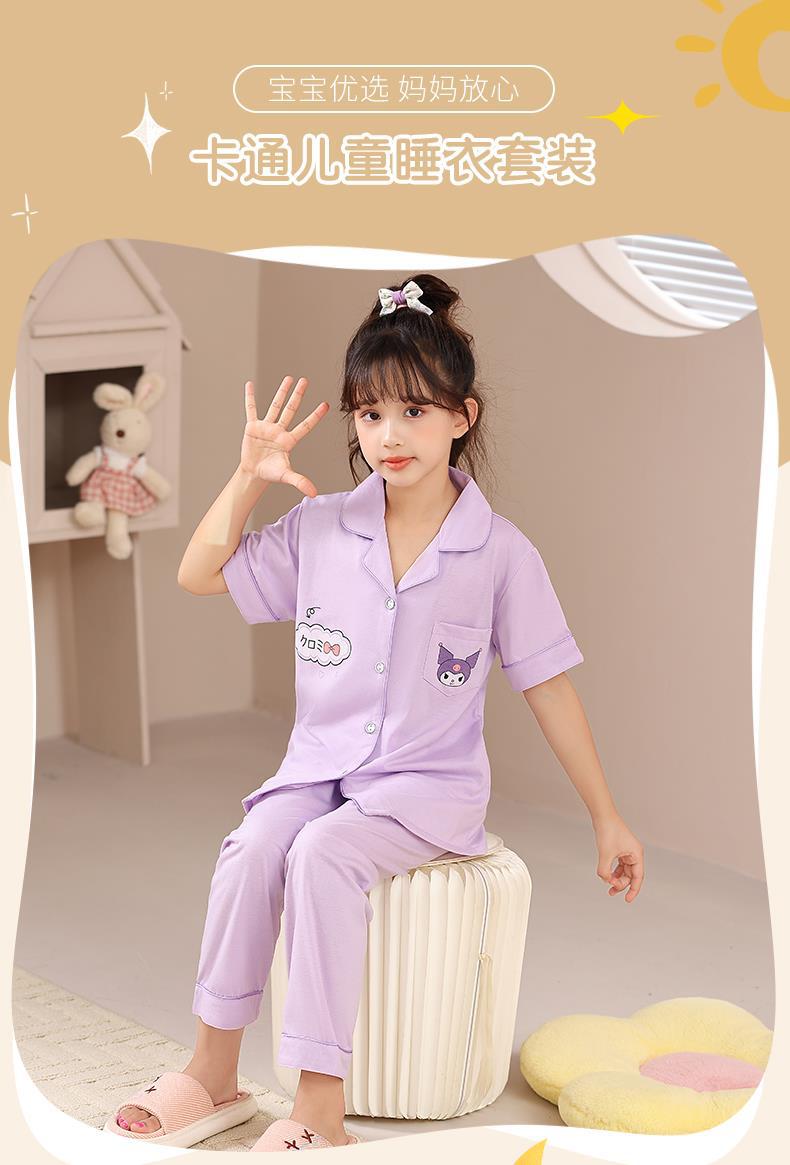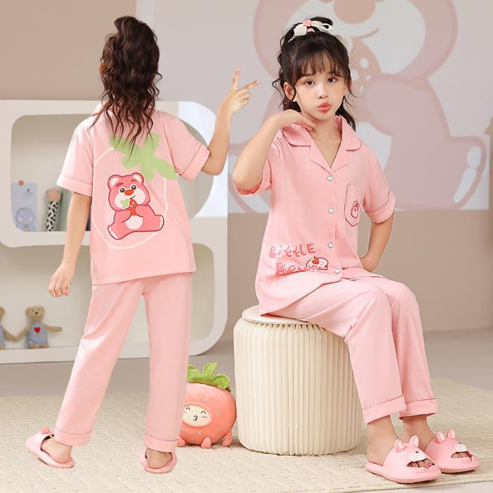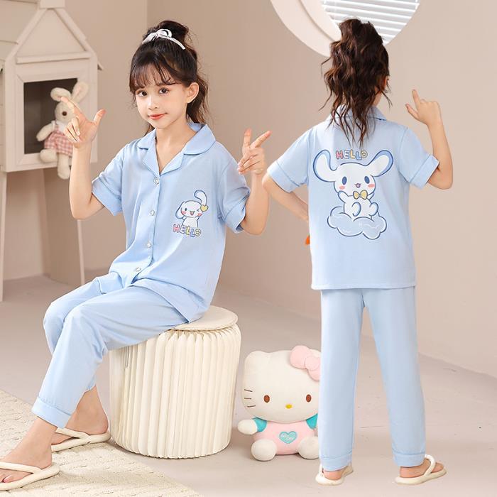 크로스 보더 어린이 잠옷 여름 순면 얇은 소녀의 카디건 옷깃 반팔 바지 유이 개 소녀의 가정복스토어 가기