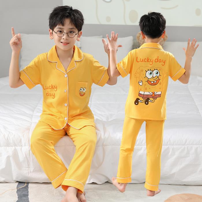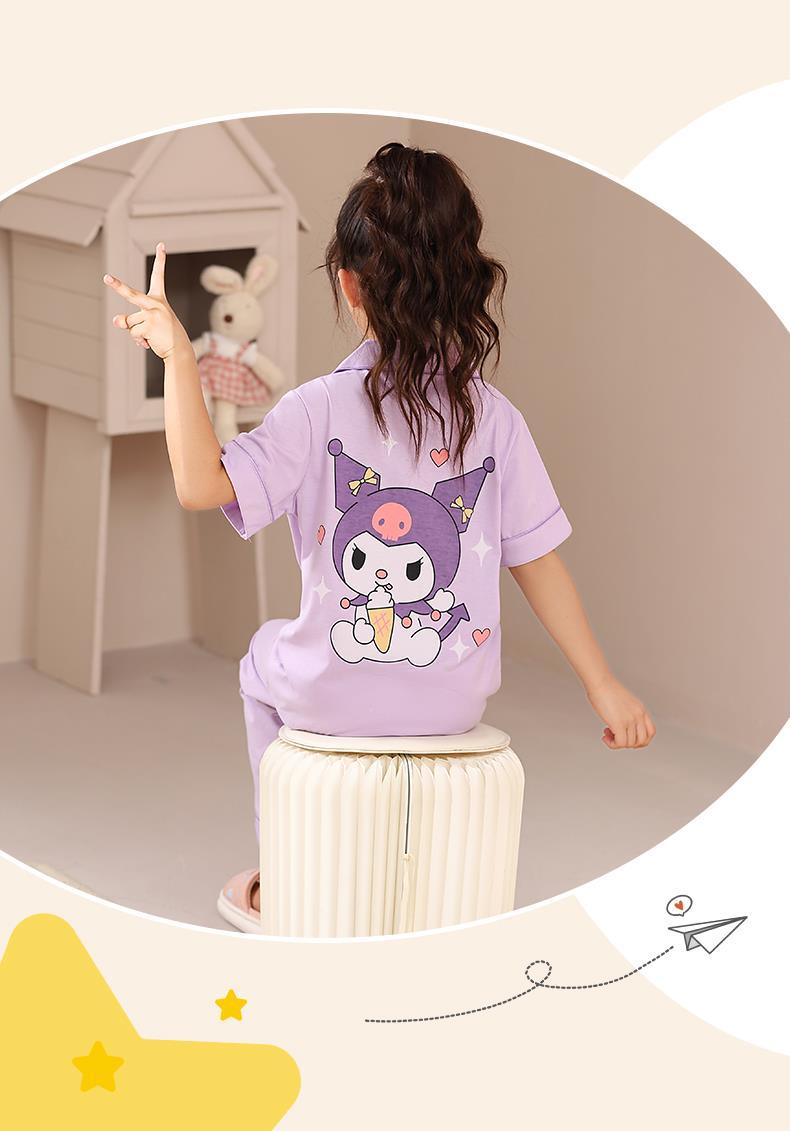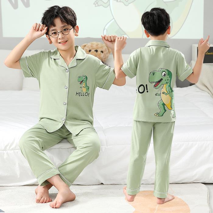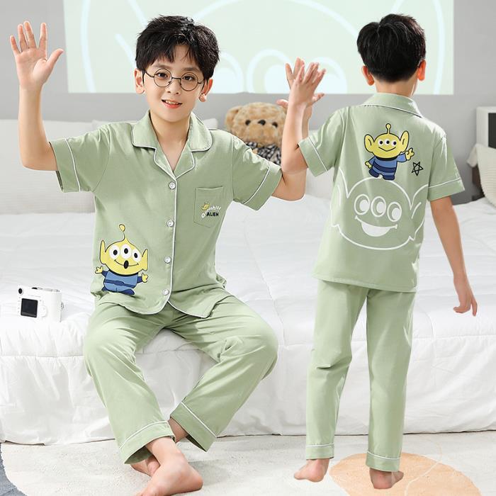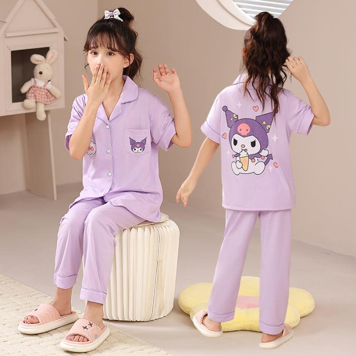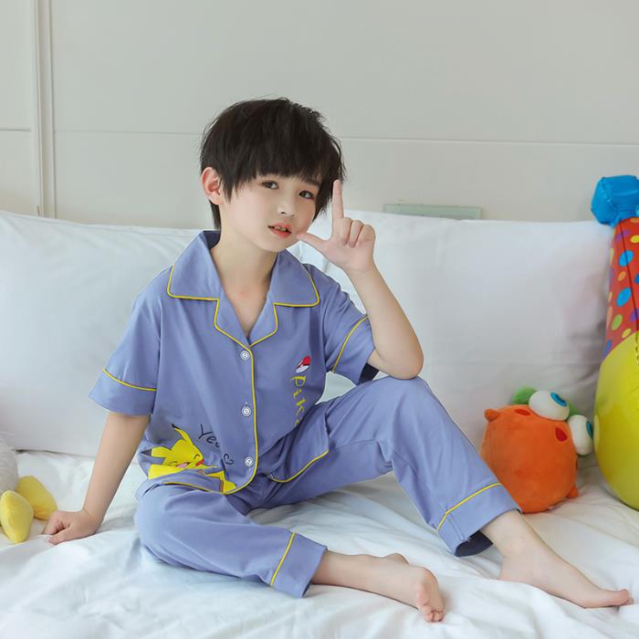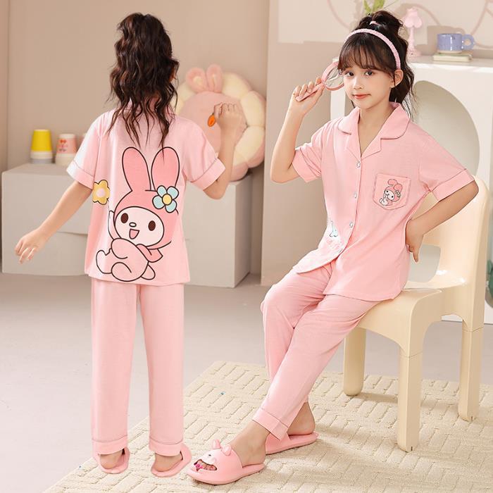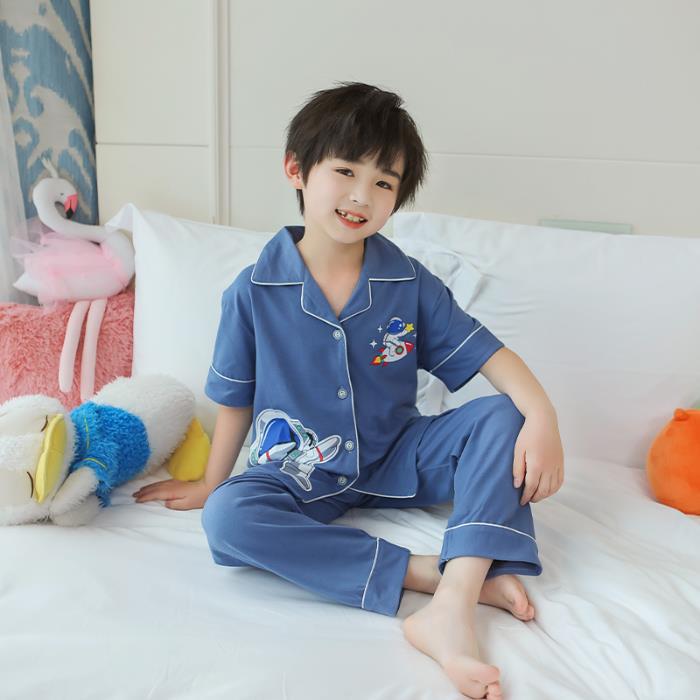 크로스 보더 어린이 잠옷 여름 순면 얇은 소녀의 카디건 옷깃 반팔 바지 유이 개 소녀의 가정복스토어 가기