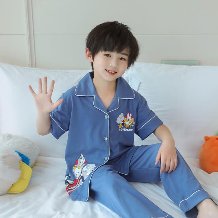 크로스 보더 어린이 잠옷 여름 순면 얇은 소녀의 카디건 옷깃 반팔 바지 유이 개 소녀의 가정복