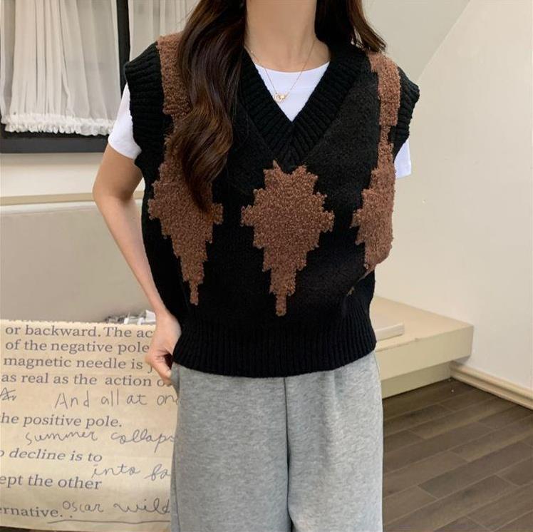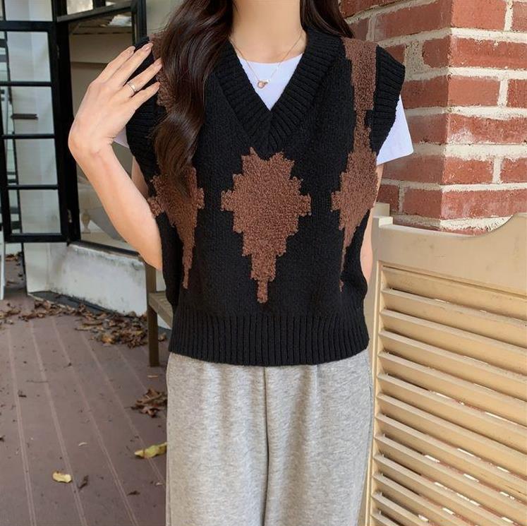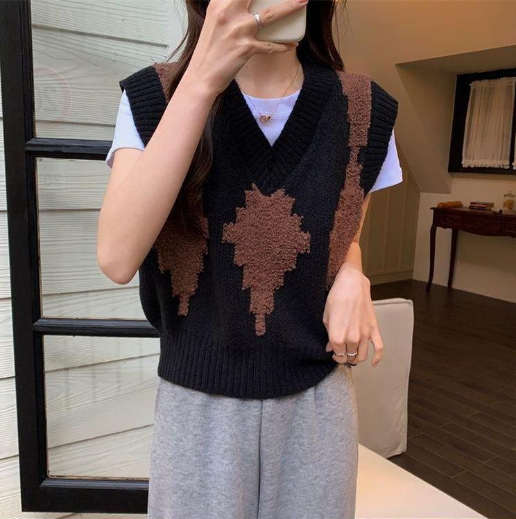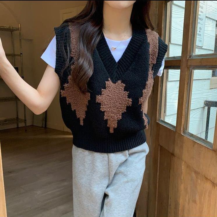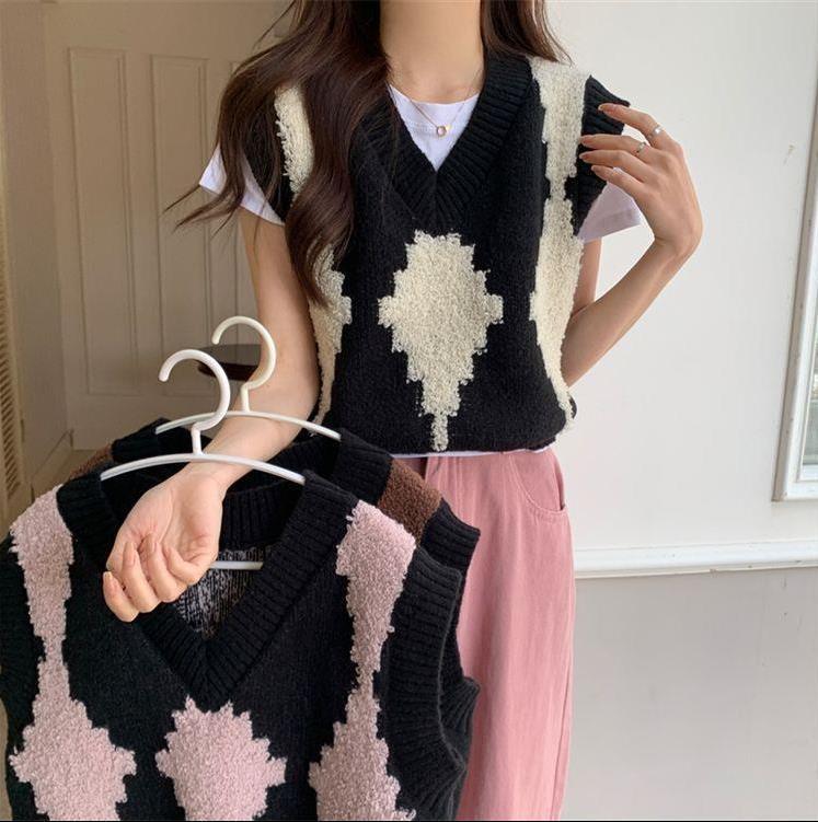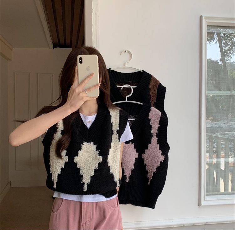 이른 봄 새로운 한국 스타일 디자인 센스 니트 조끼 마름모꼴 입체 민소매 조끼 여성용 탑스토어 가기