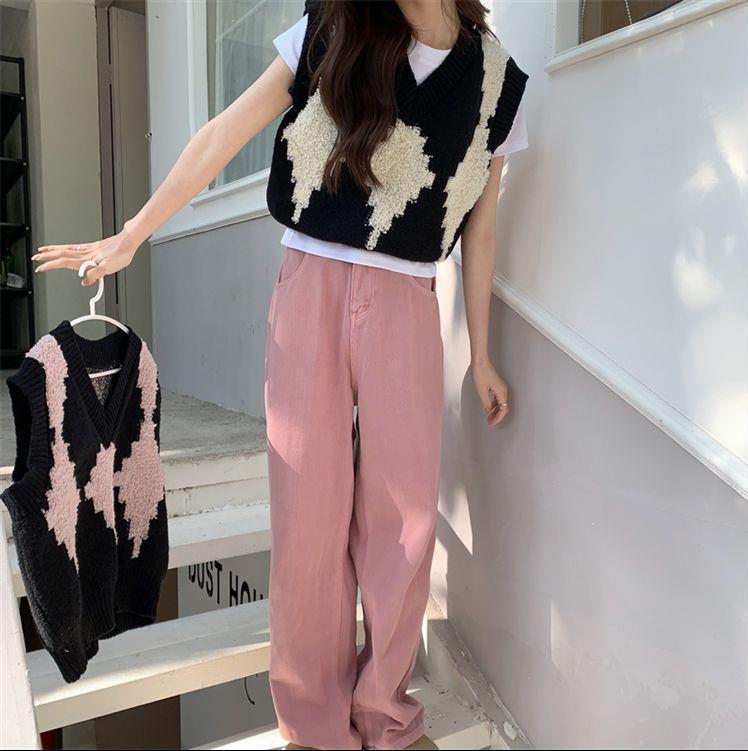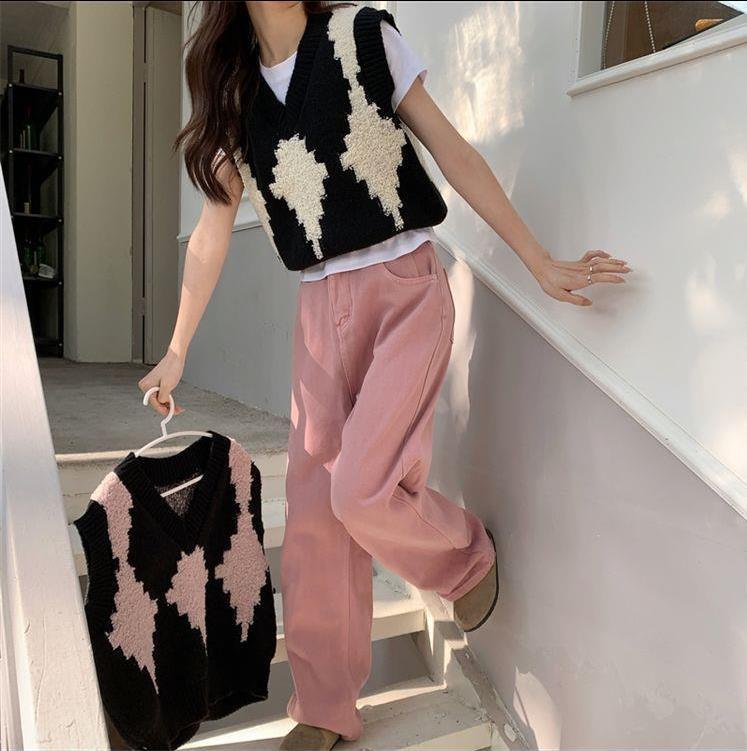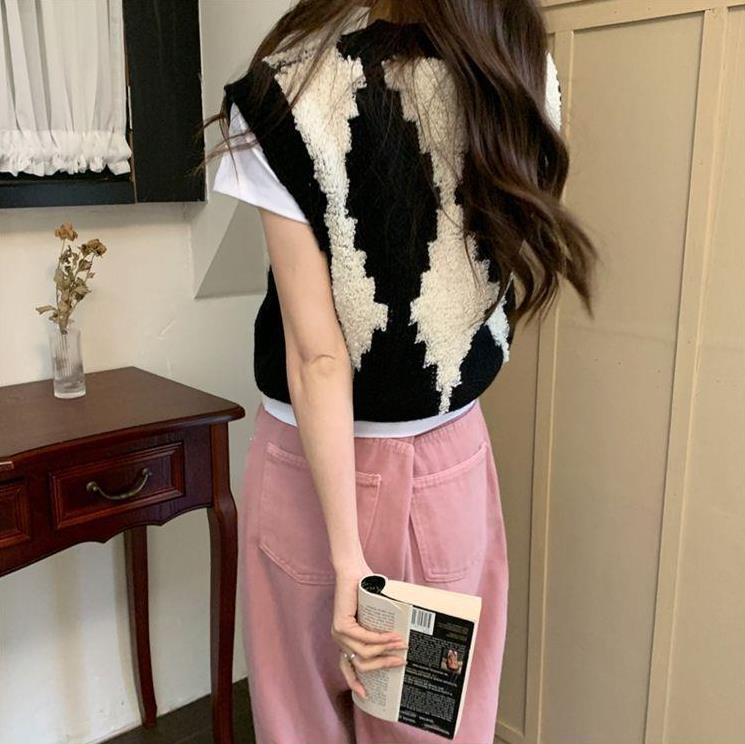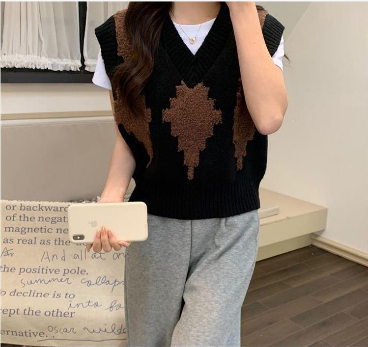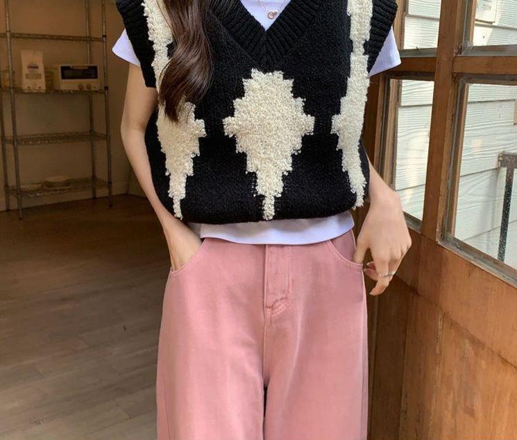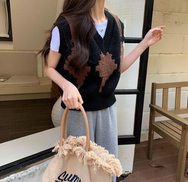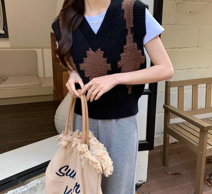 이른 봄 새로운 한국 스타일 디자인 센스 니트 조끼 마름모꼴 입체 민소매 조끼 여성용 탑스토어 가기