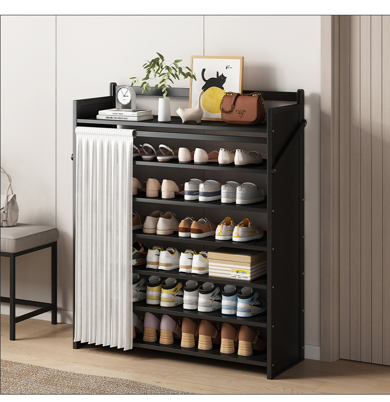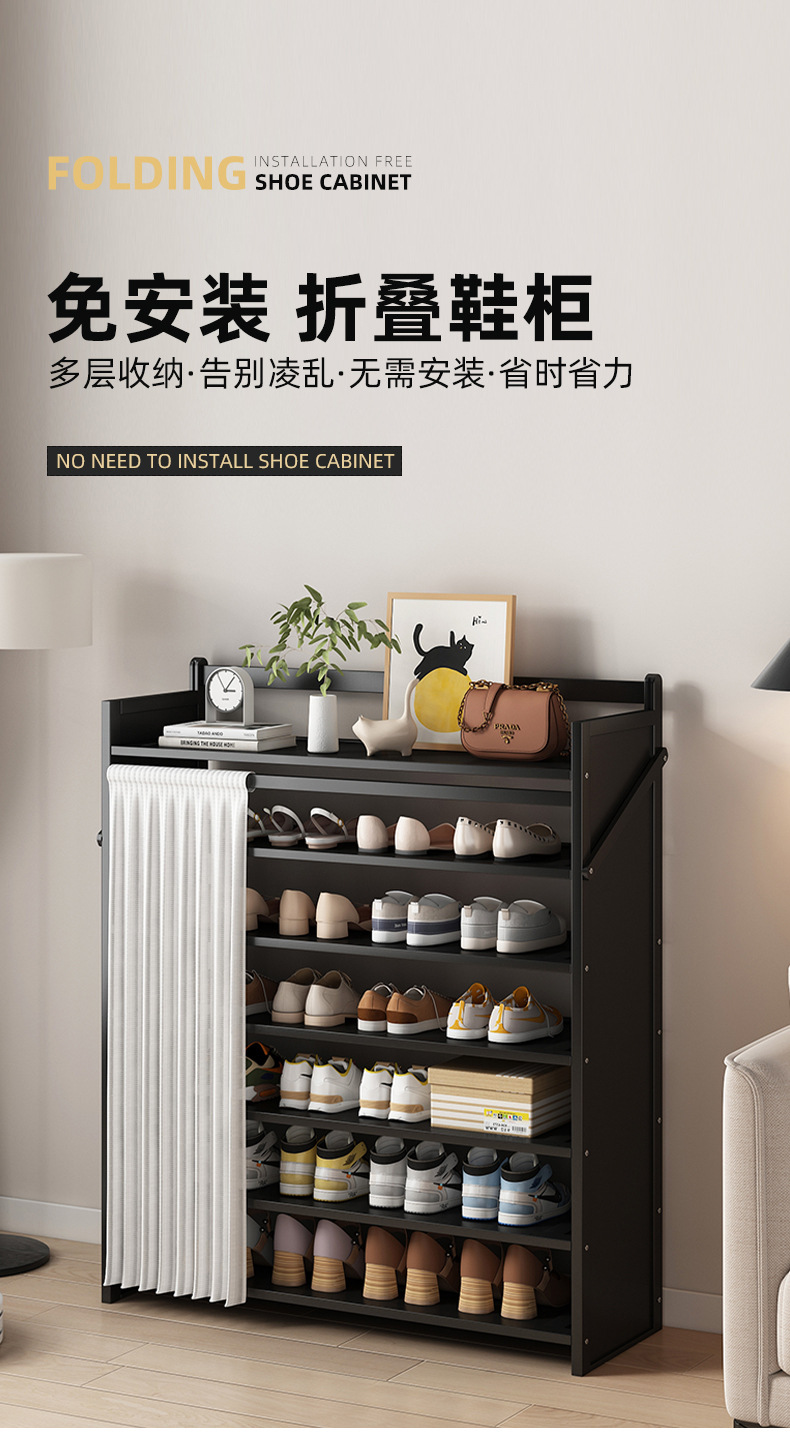 블랙 심플 신발장 경제적 인 방진 설치 무료 수납 신발장 임대 주택 자체 쉼터 커튼 보관함 홈