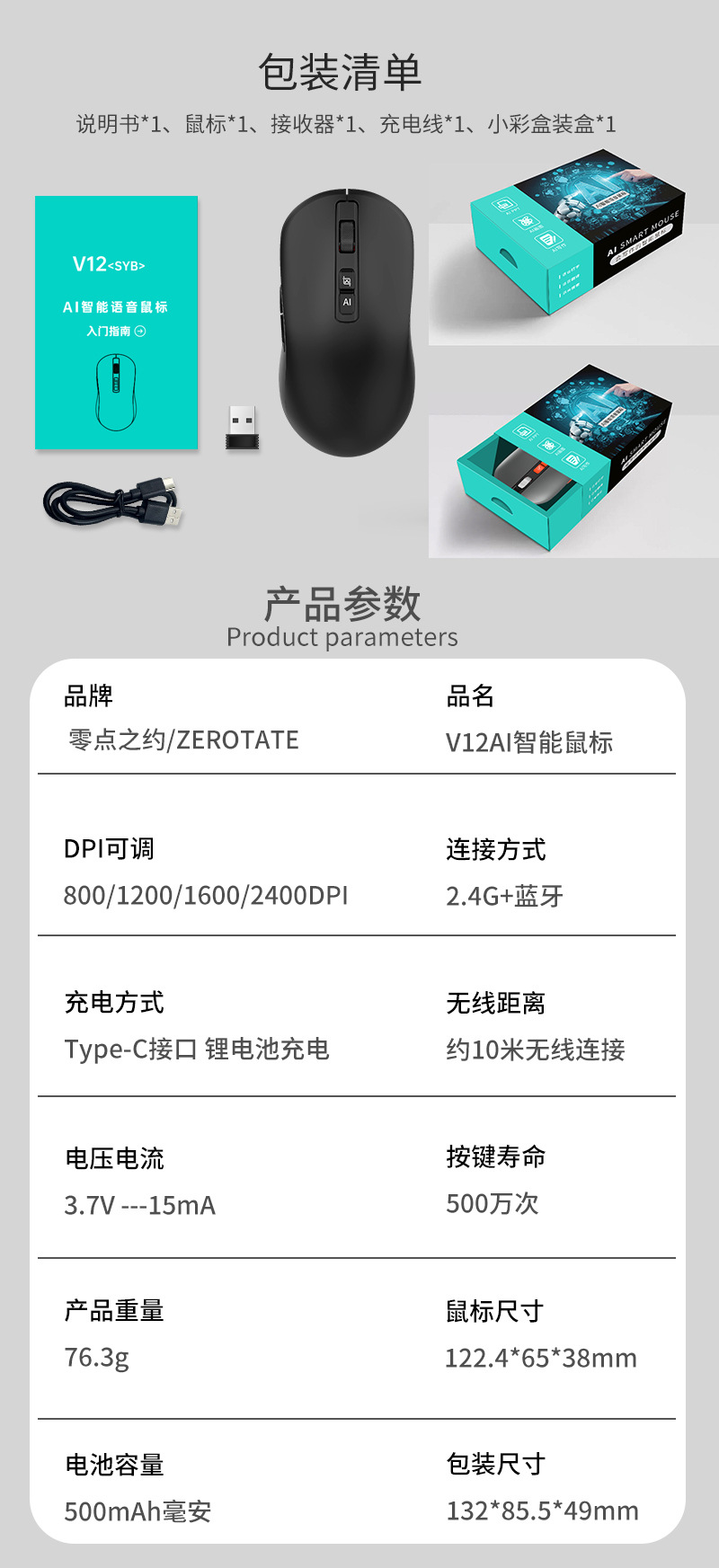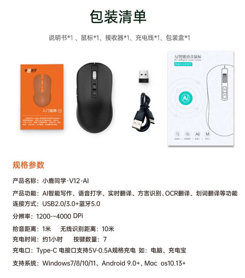 공장 재고 Ai 마우스 V12 번역 음성 입력 지능형 쓰기 PPT 테이블 DeepSeek 모델스토어 가기