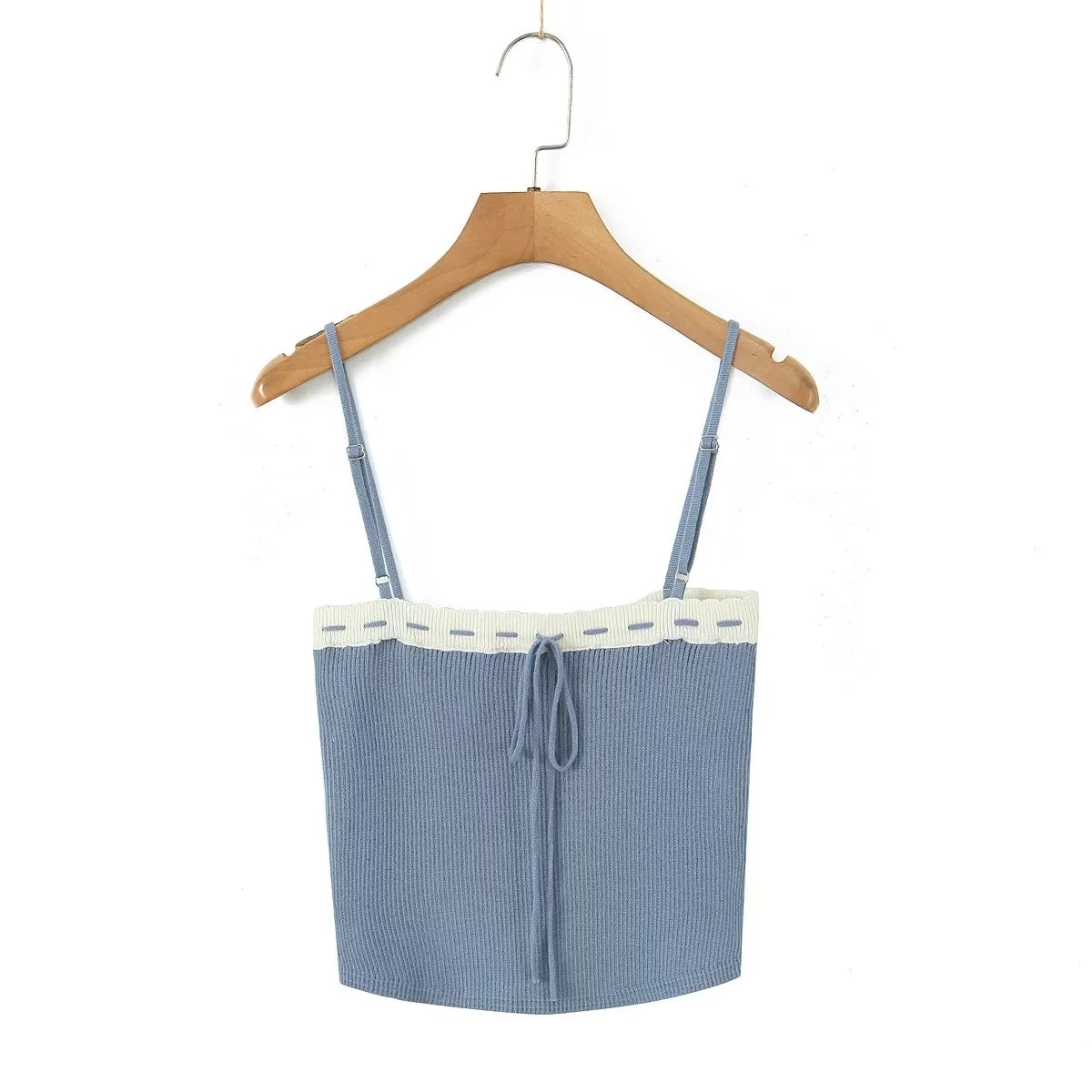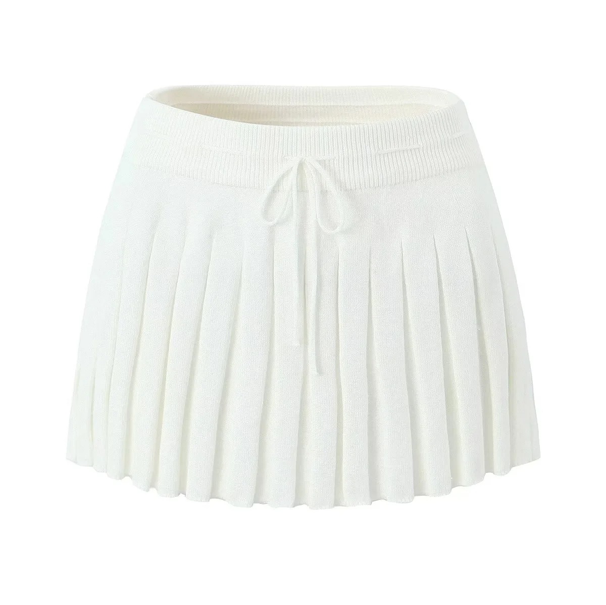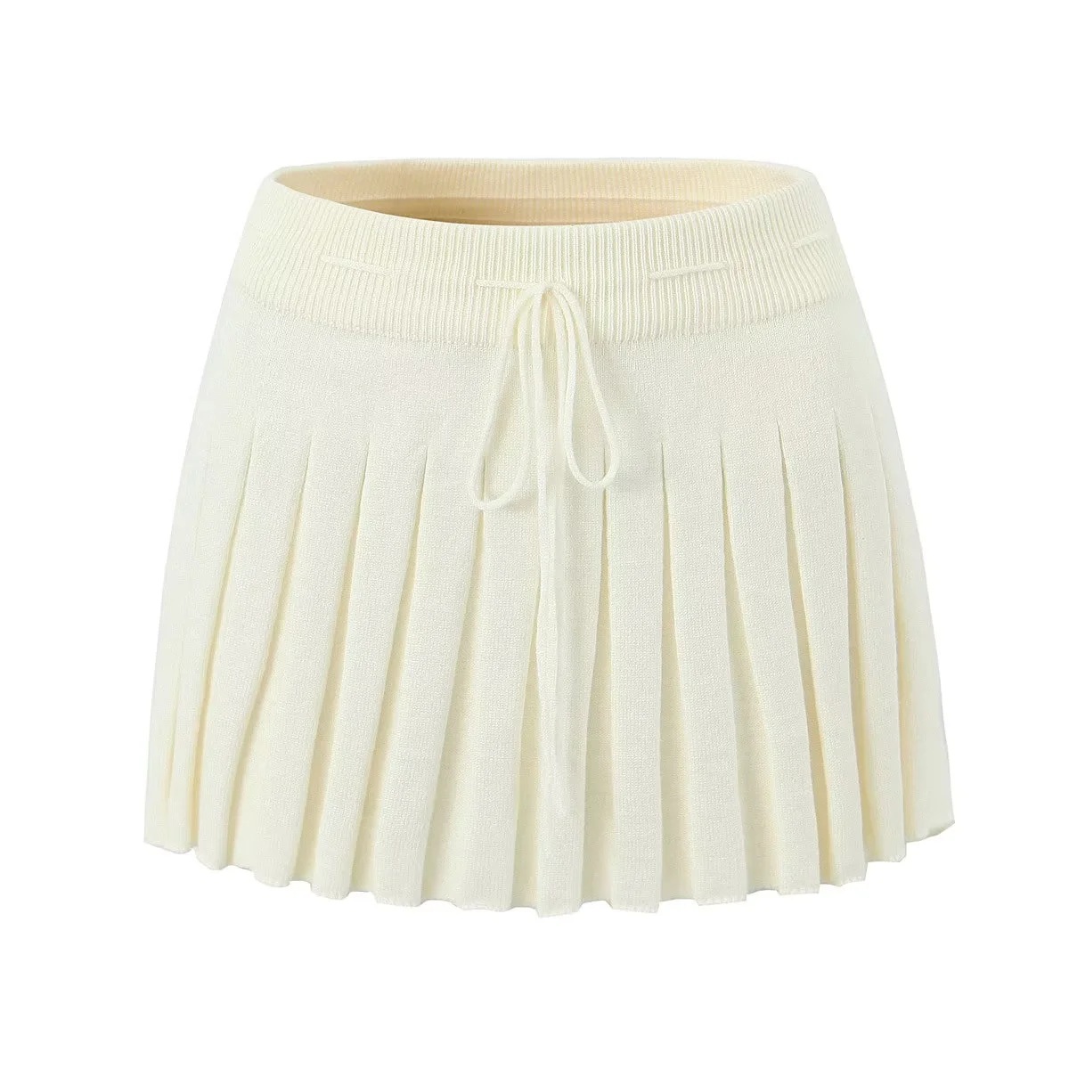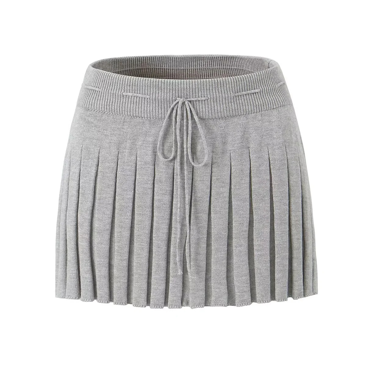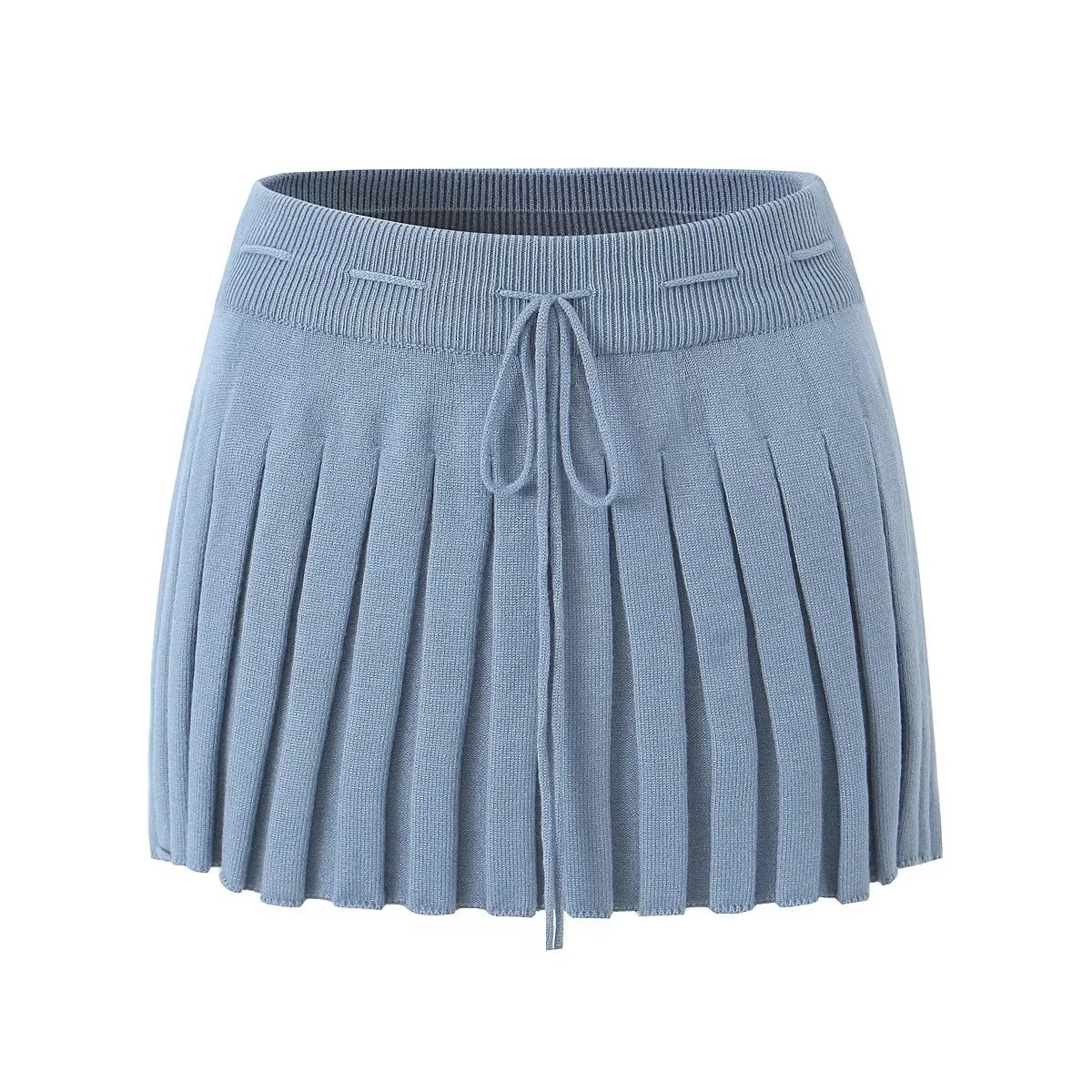 초가을 부드러운 니트 레이스업 쓰리피스 세트 여성용 2023 년 새로운 라펠 긴팔 재킷 + 배색 슬링 + 플리츠 스커트
