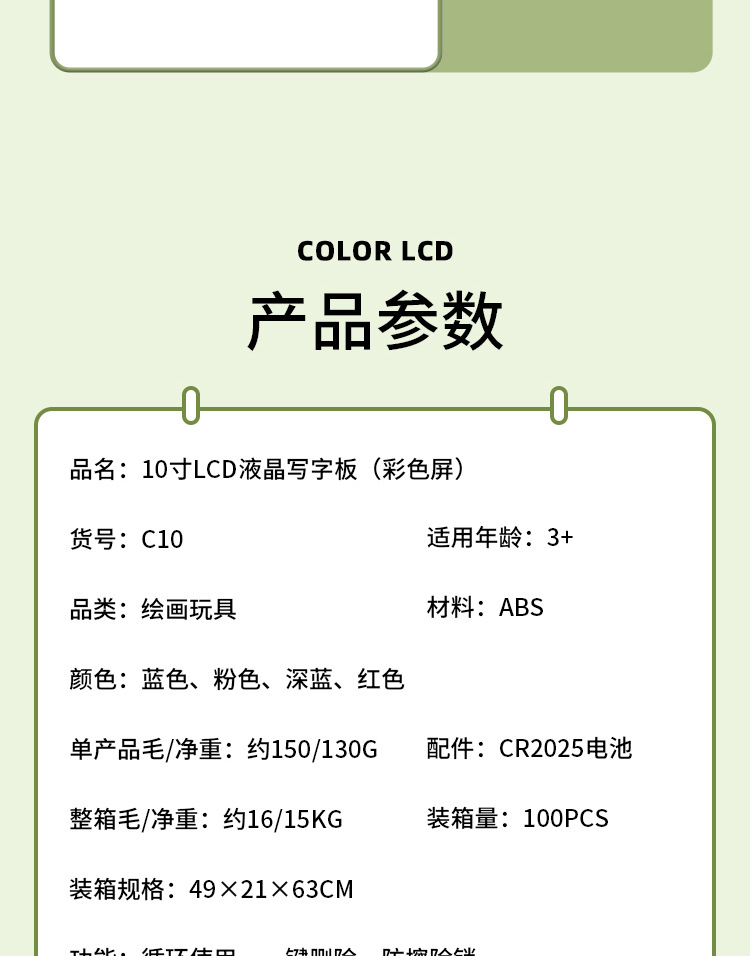 • 단색 LCD 화면-10 인치 (스카이 블루)