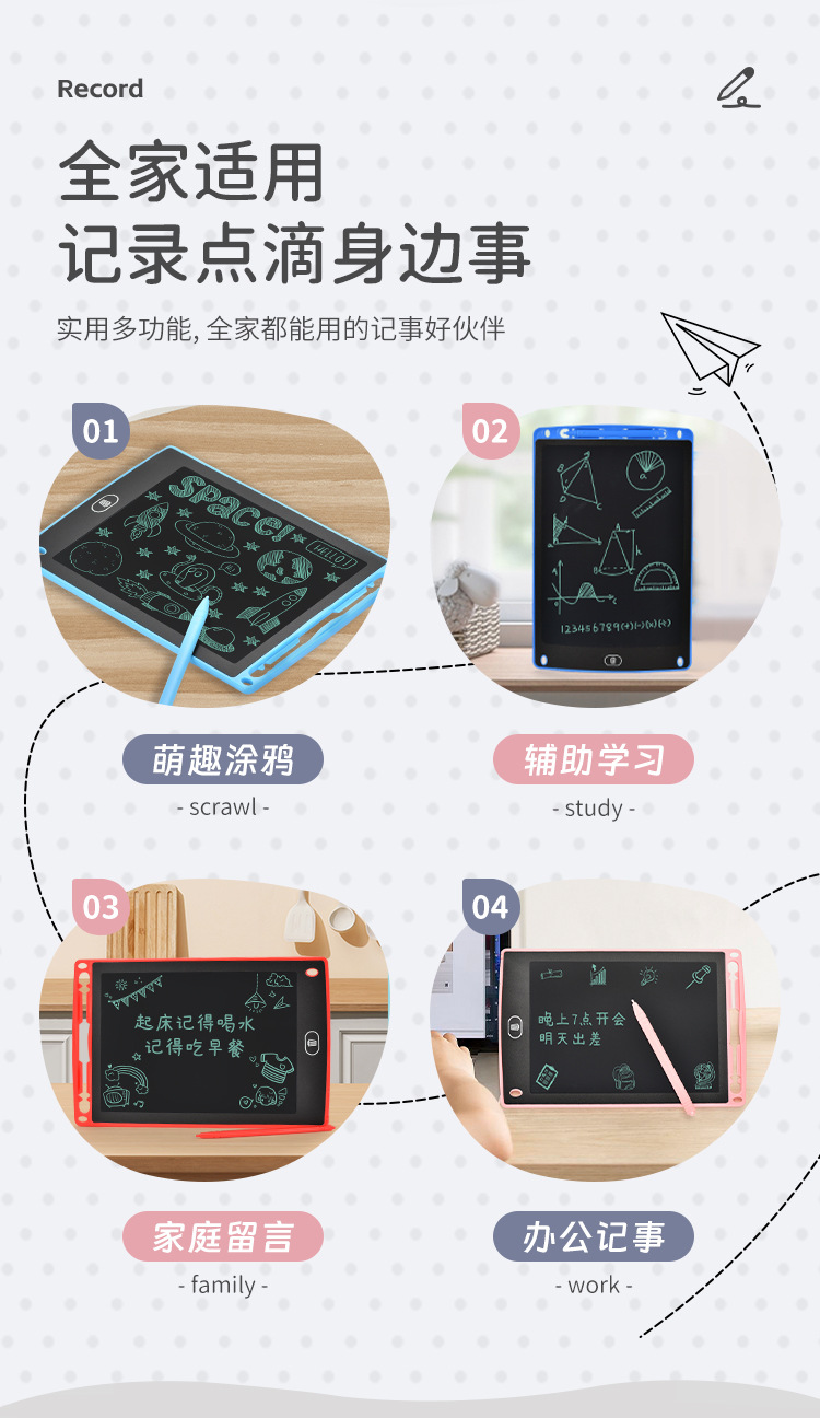 8.5 인치 LCD 필기 보드 색상 어린이 그림 작은 칠판 메시지 낙서 드로잉 보드 하이라이트 필기 보드