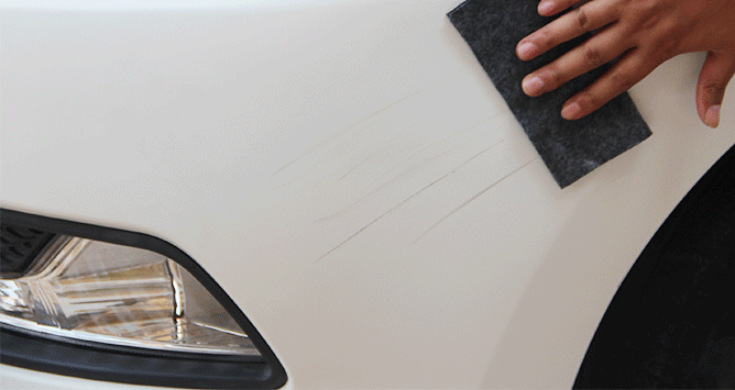 2,使用前先清洁划痕表面,等表面干燥后取出修复布在划痕的地方擦拭,搓搓搓,直到划痕消失!