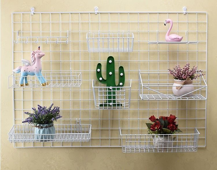 In 그리드 스토리지 랙 가정용 화분 식물 보안 창 교수형 바구니 사진 벽 액세서리 철 상품 디스플레이 바구니
