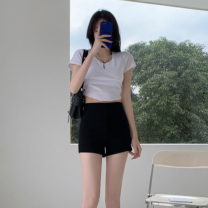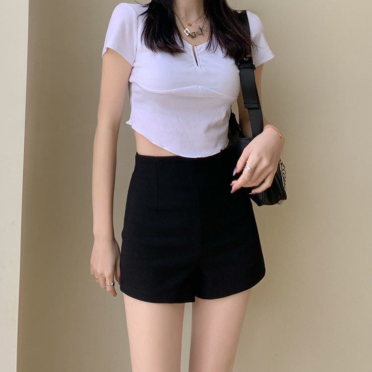 블랙 반바지 여성용 여름 하이 웨이스트 한국 스타일 모든 매치 하의 반바지 겉옷 스트레치 2023 팬츠 슬림핏 캐주얼 핫팬츠 트렌디스토어 가기