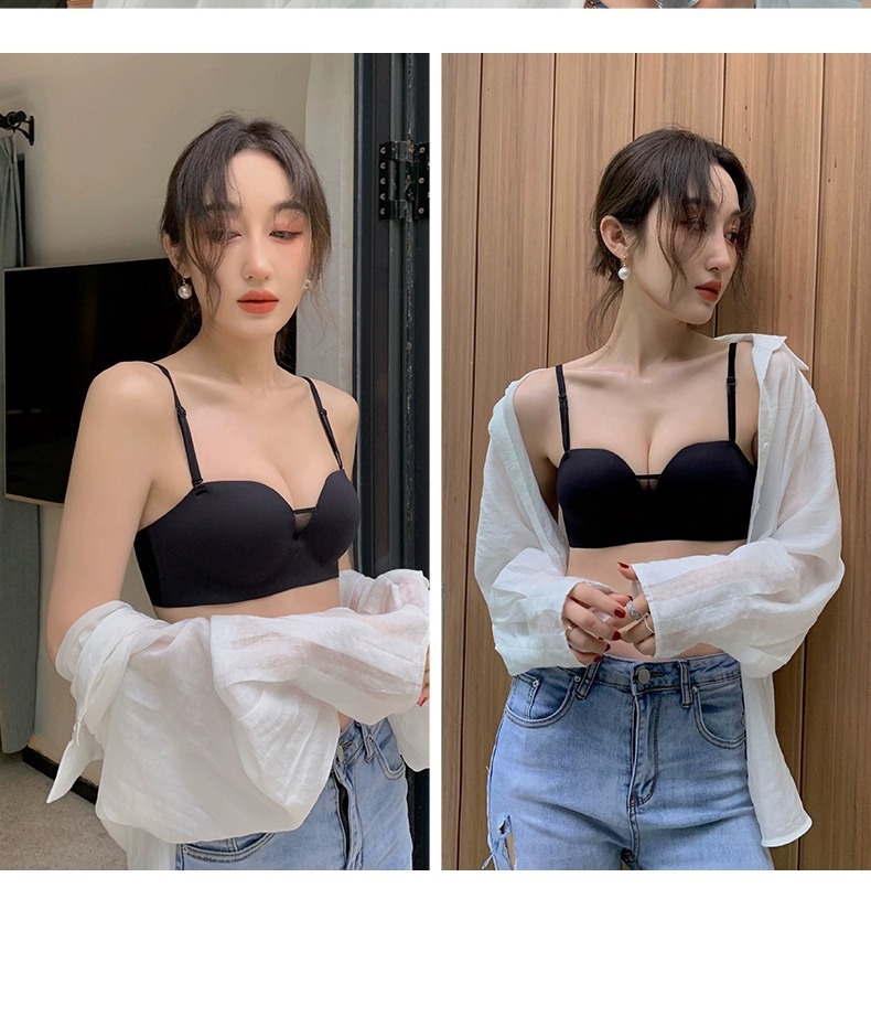 여름 이동식 끈이없는 속옷 여성용 작은 가슴 개더 업 새로운 아름다운 등 paramary 가슴 섹시 편안한 링리스 브래지어