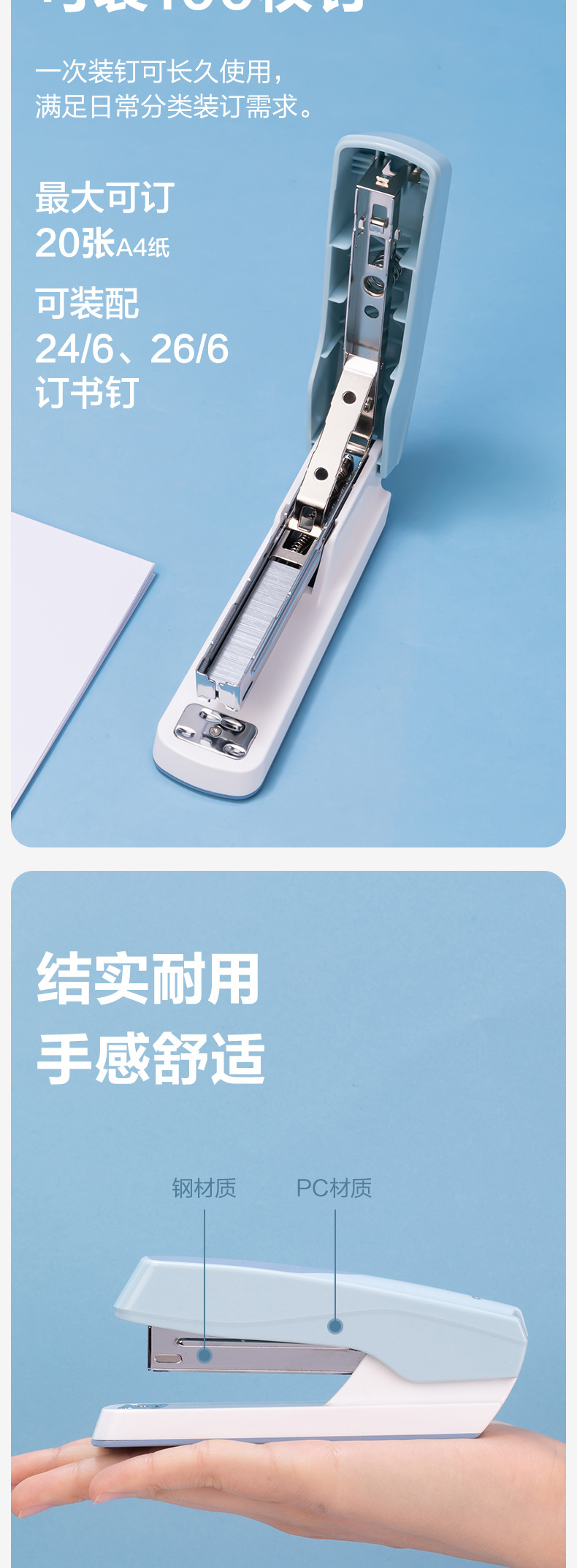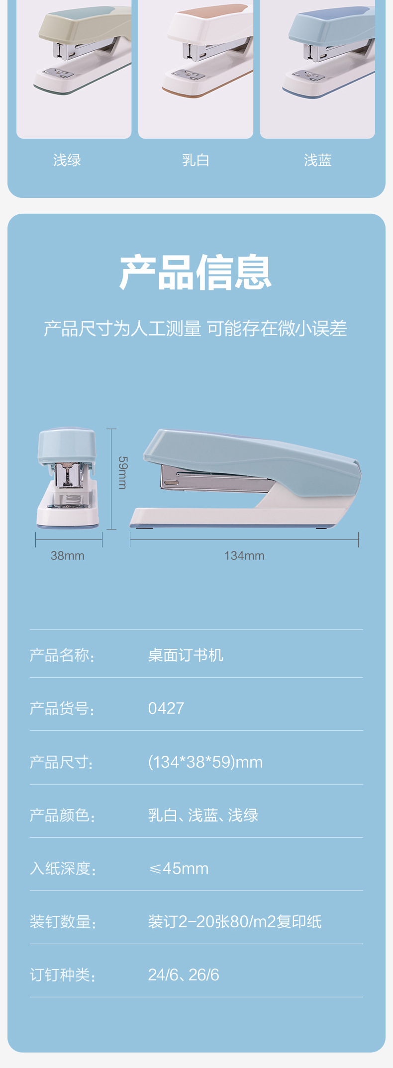 • 델리 0427_12 # 데스크탑 스테이플러 (라이트 블루) (상자)