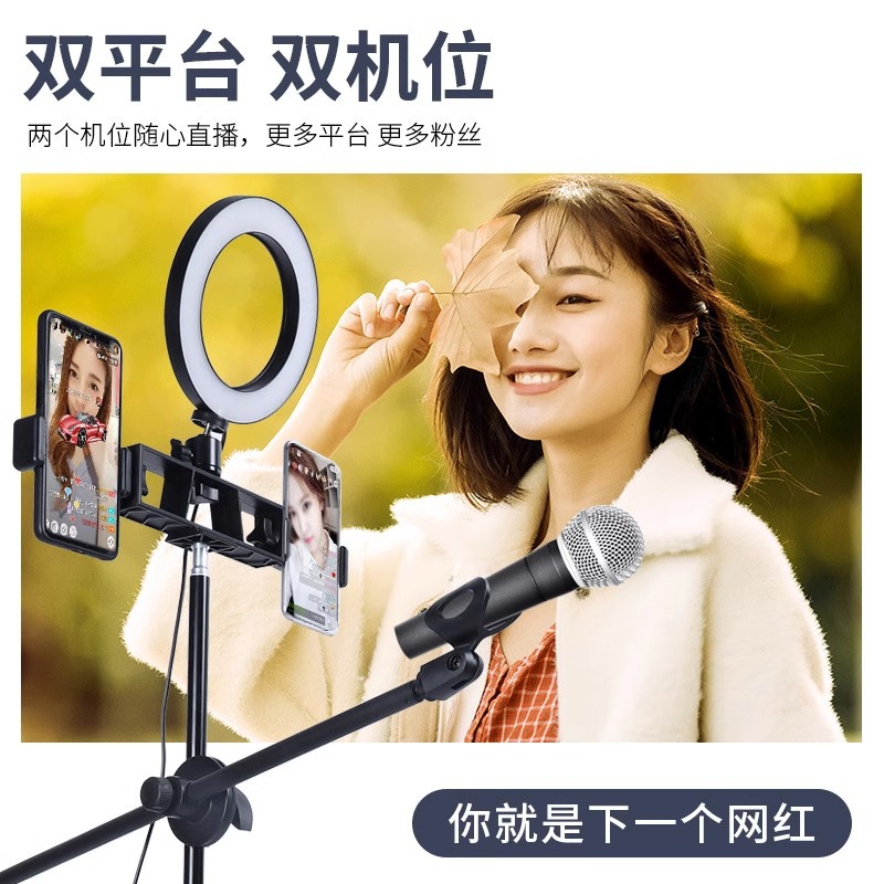 휴대 전화 라이브 방송 브래킷 부속품 부품 회전 클립 다기능 필 라이트 사운드 카드 트레이 랙 팬/틸트스토어 가기
