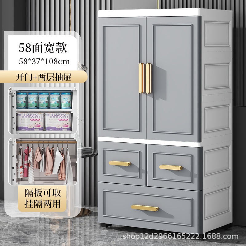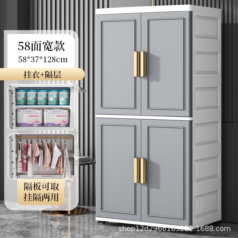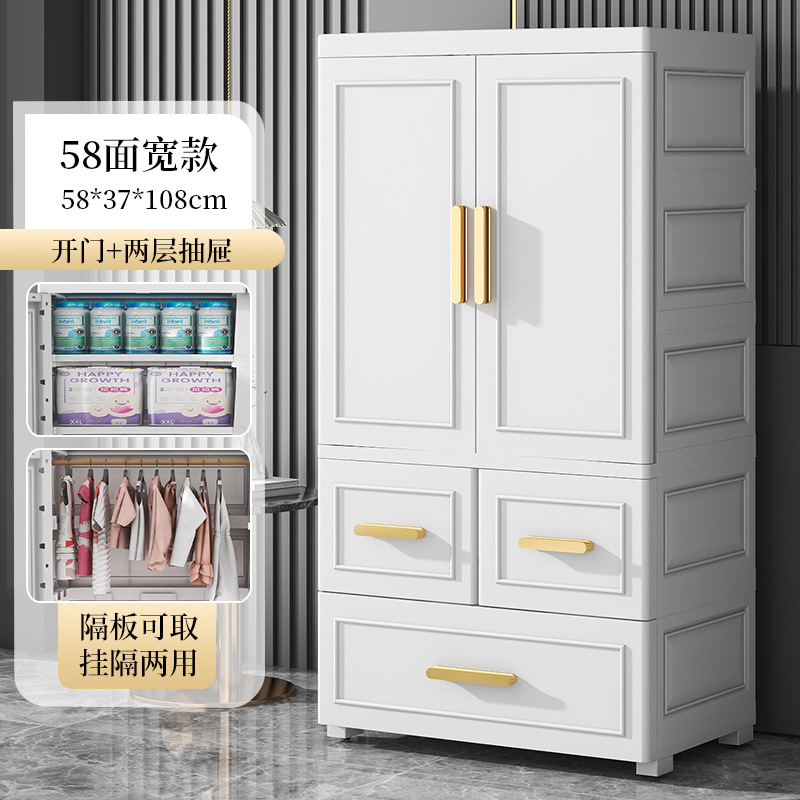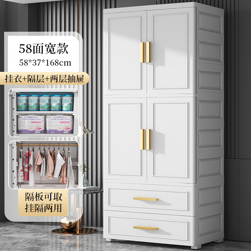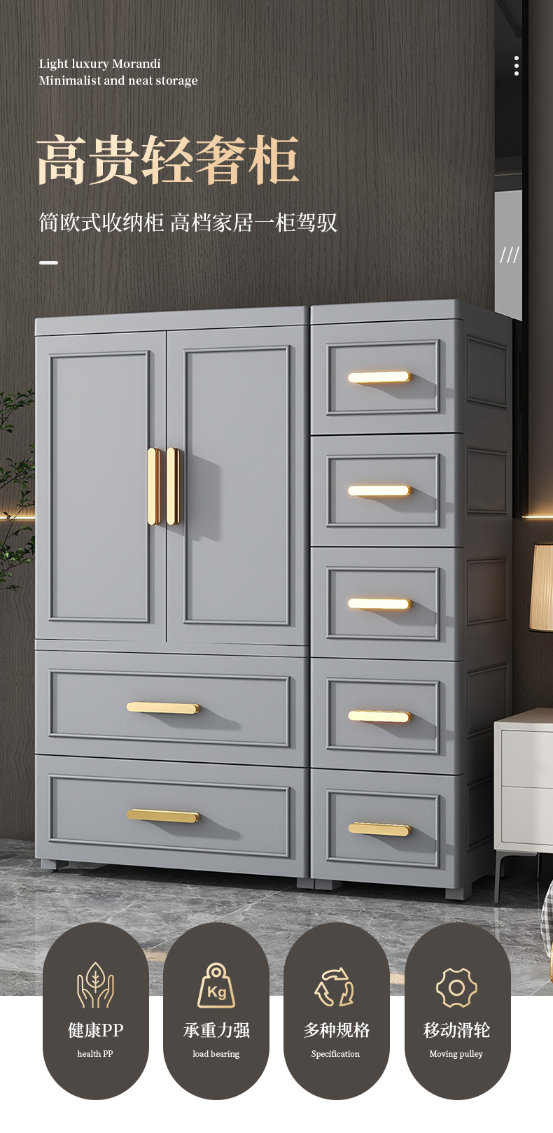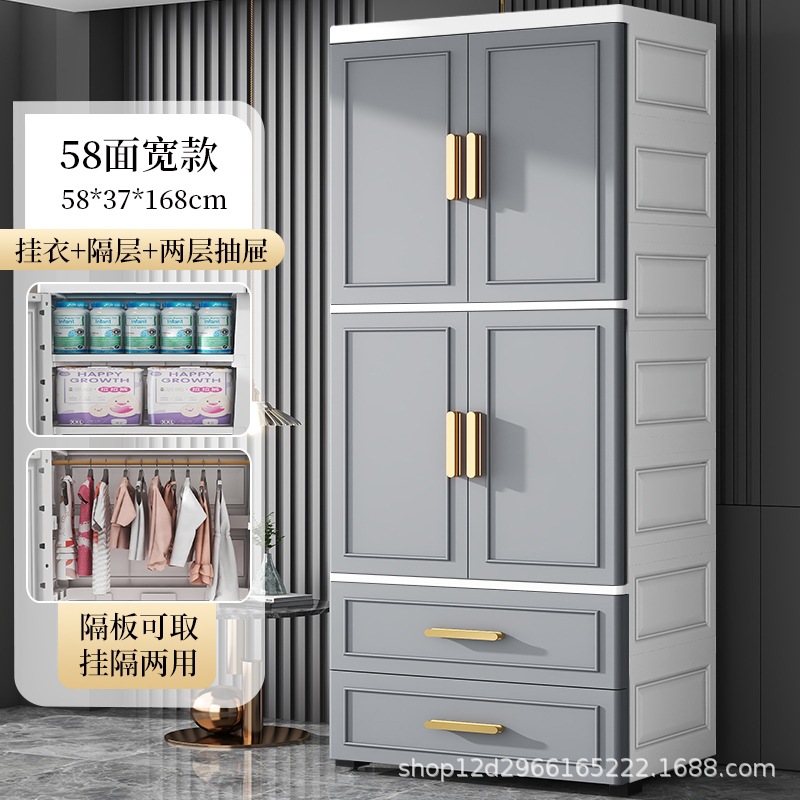 유럽 스타일 라이트 럭셔리 더블 도어 플라스틱 옷장 성인 가정용 초대형 간단한 조합 침실 아기 보관함
