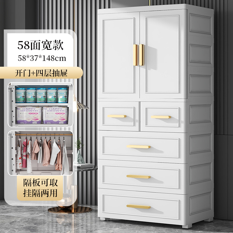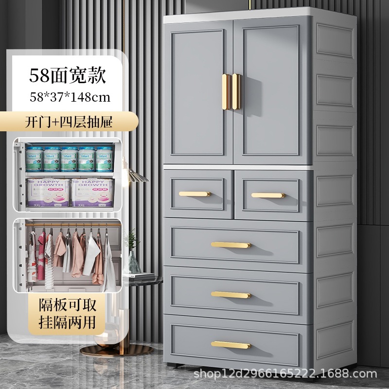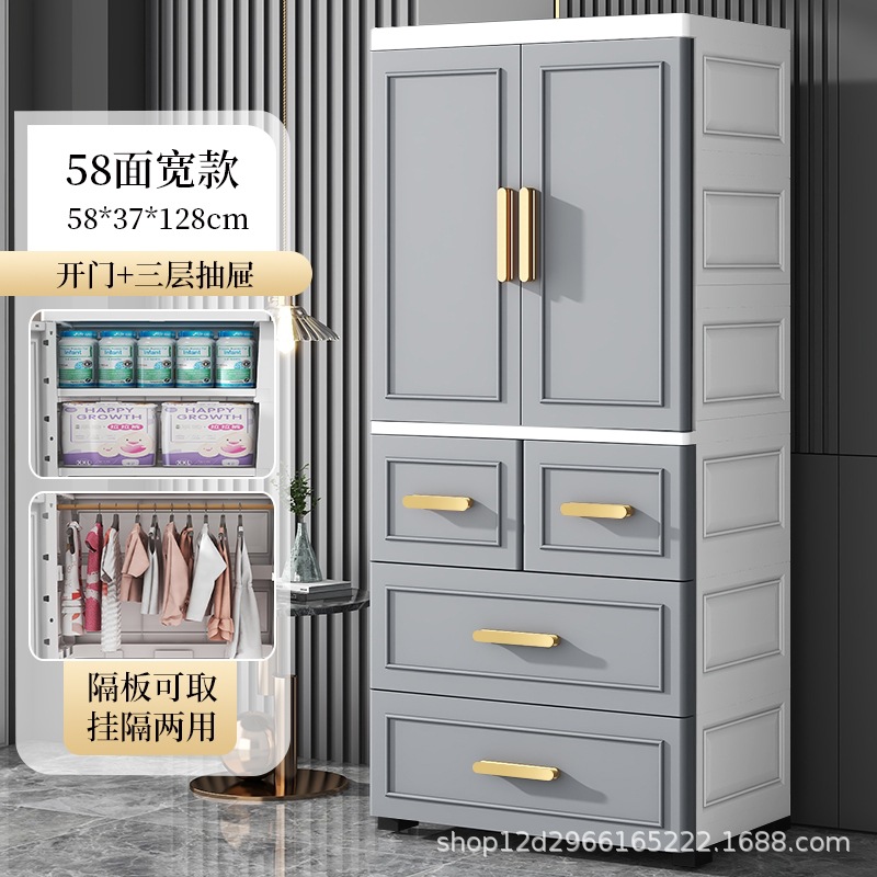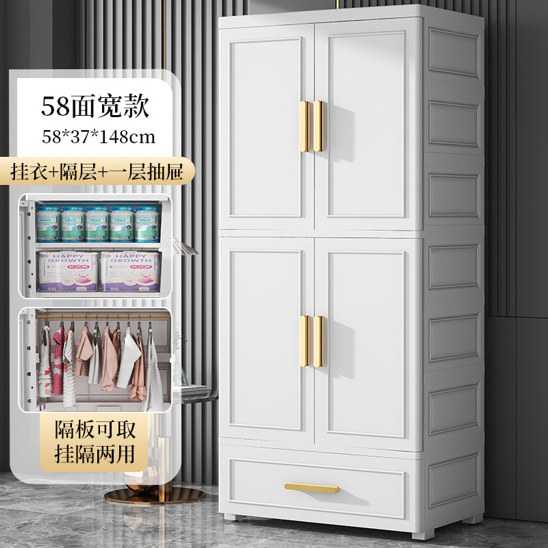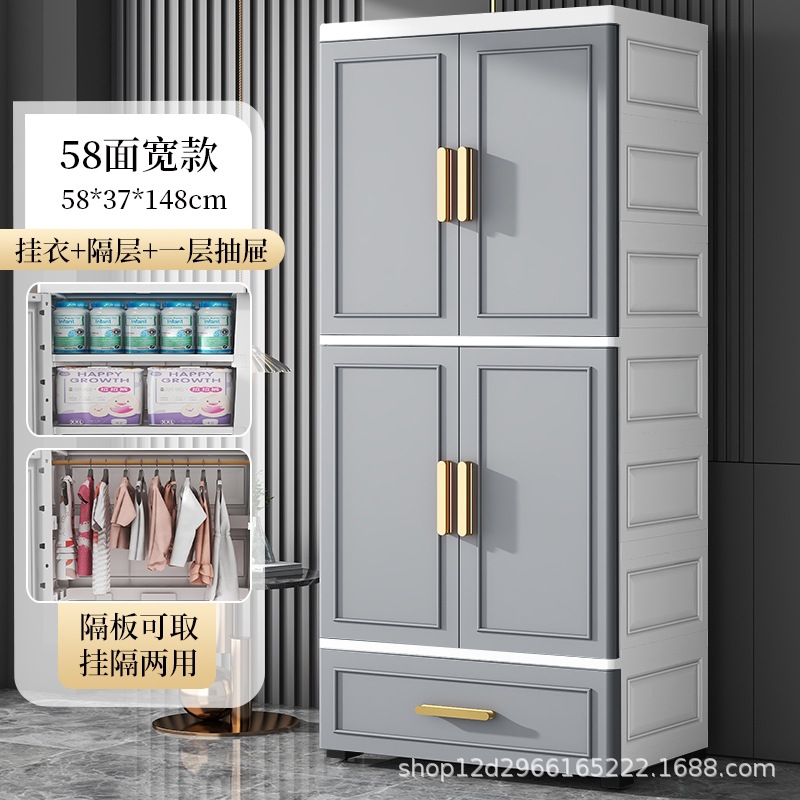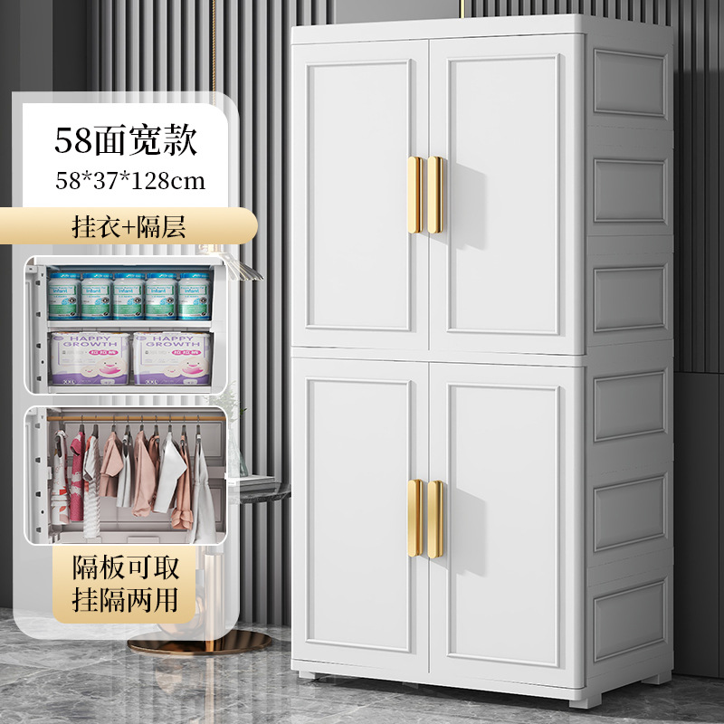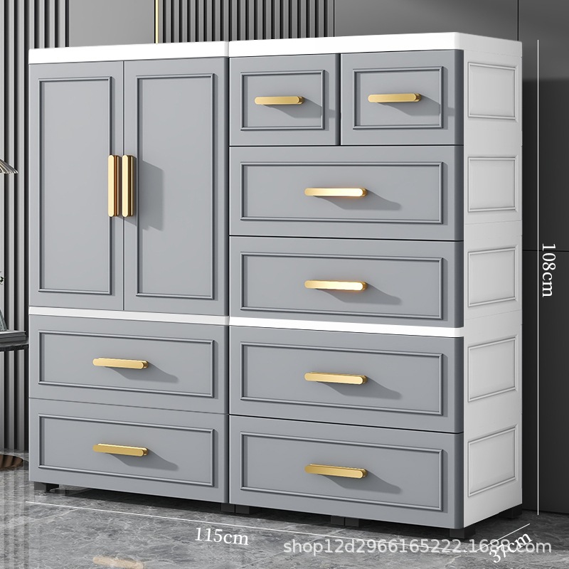 유럽 스타일 라이트 럭셔리 더블 도어 플라스틱 옷장 성인 가정용 초대형 간단한 조합 침실 아기 보관함