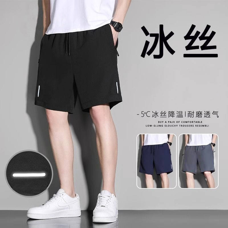 아이스 실크 반바지 남성용 여름 얇은 탄성 느슨한 바지 남성 캐주얼 미디엄 팬츠 인쇄 속건 비치 팬츠스토어 가기