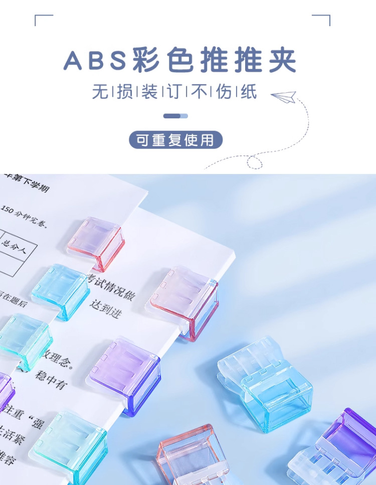 컬러 푸시 클립 투명 푸시 클립 Morandi 폴더 간단 청구서 폴더 플라스틱 사무실 수납 전체스토어 가기
