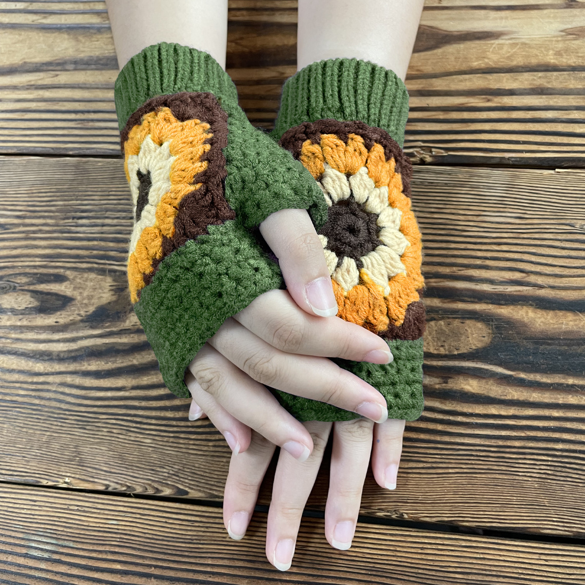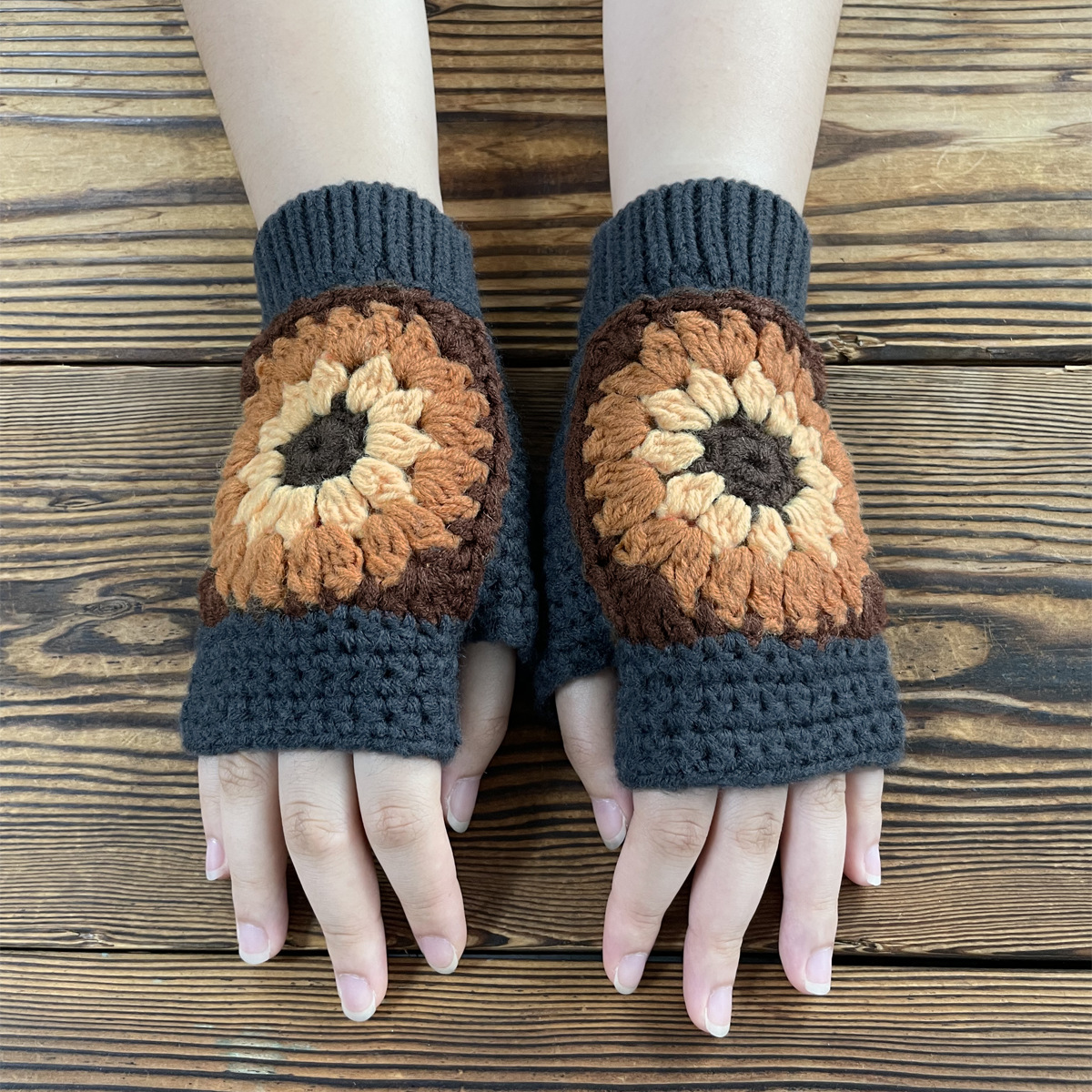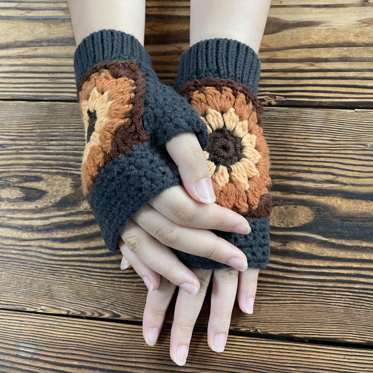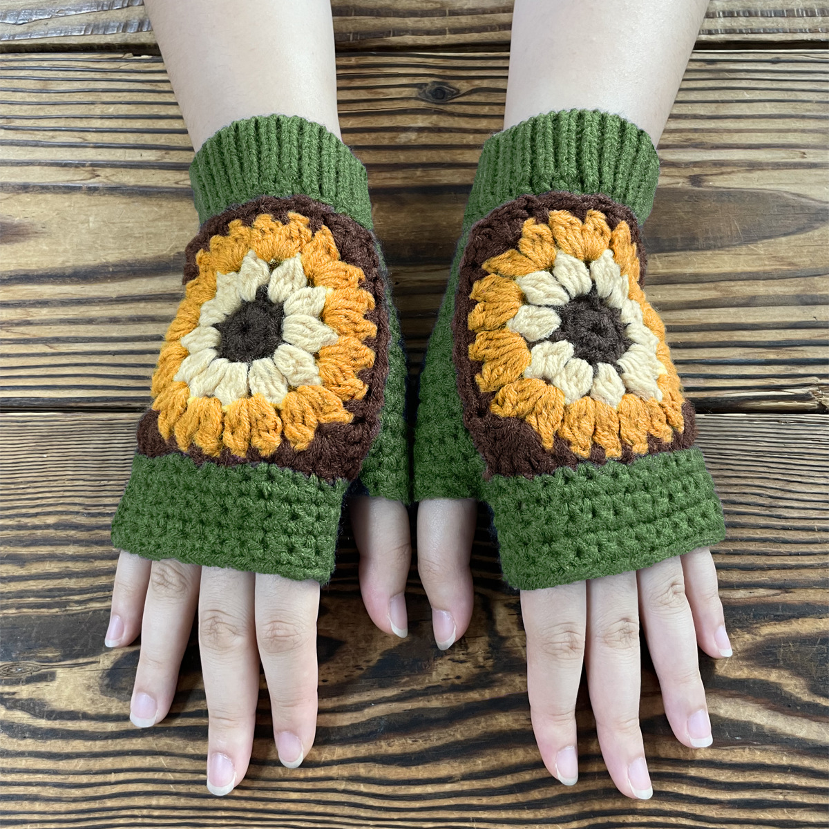 아마존 독립 역 교차 국경 가을과 겨울 새로운 수제 해바라기 방한 따뜻한 반 손가락 양모 장갑 여성용