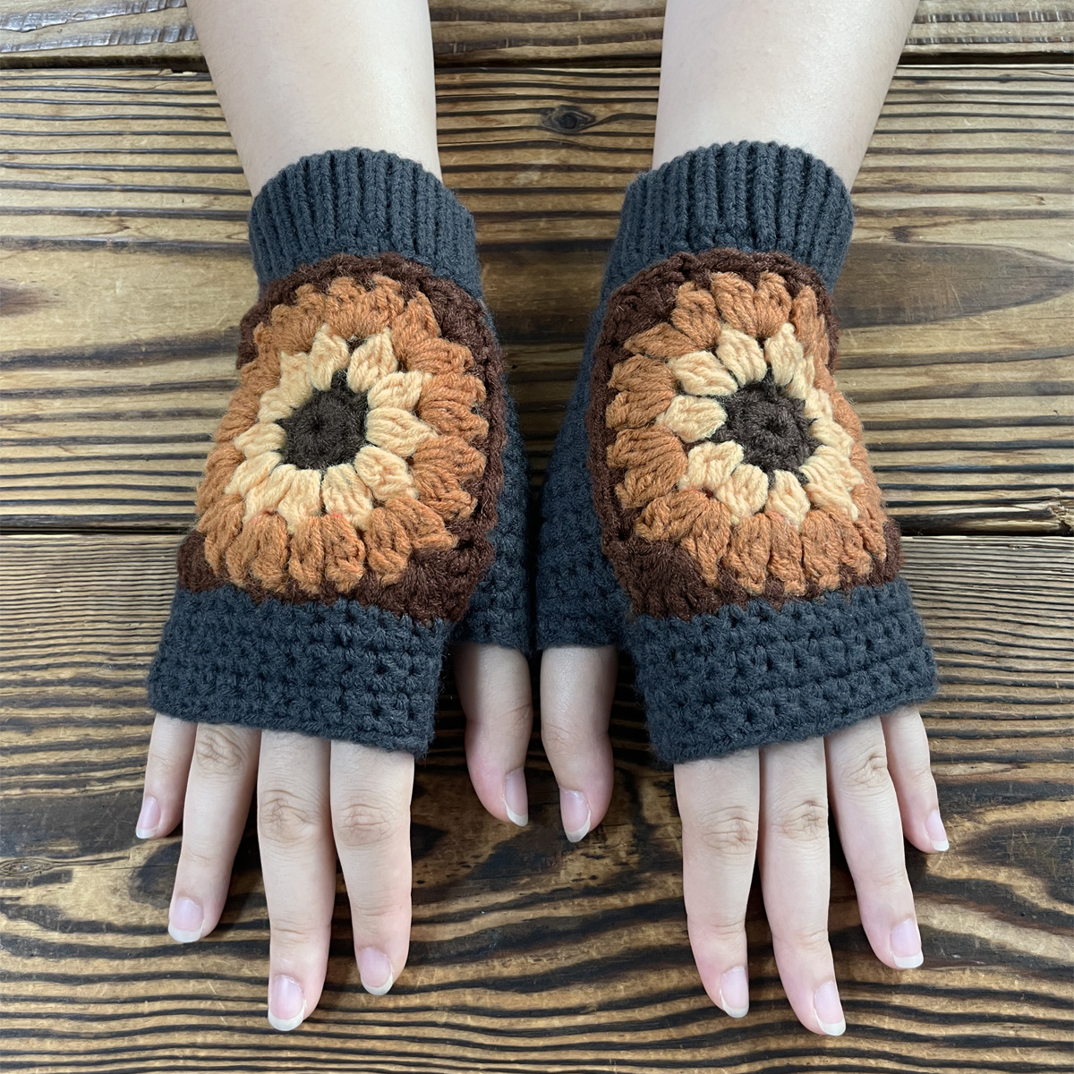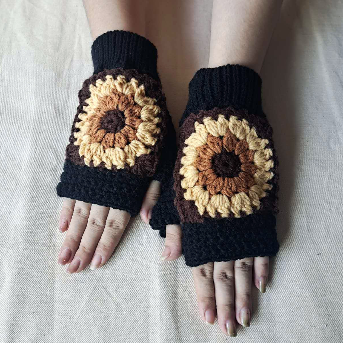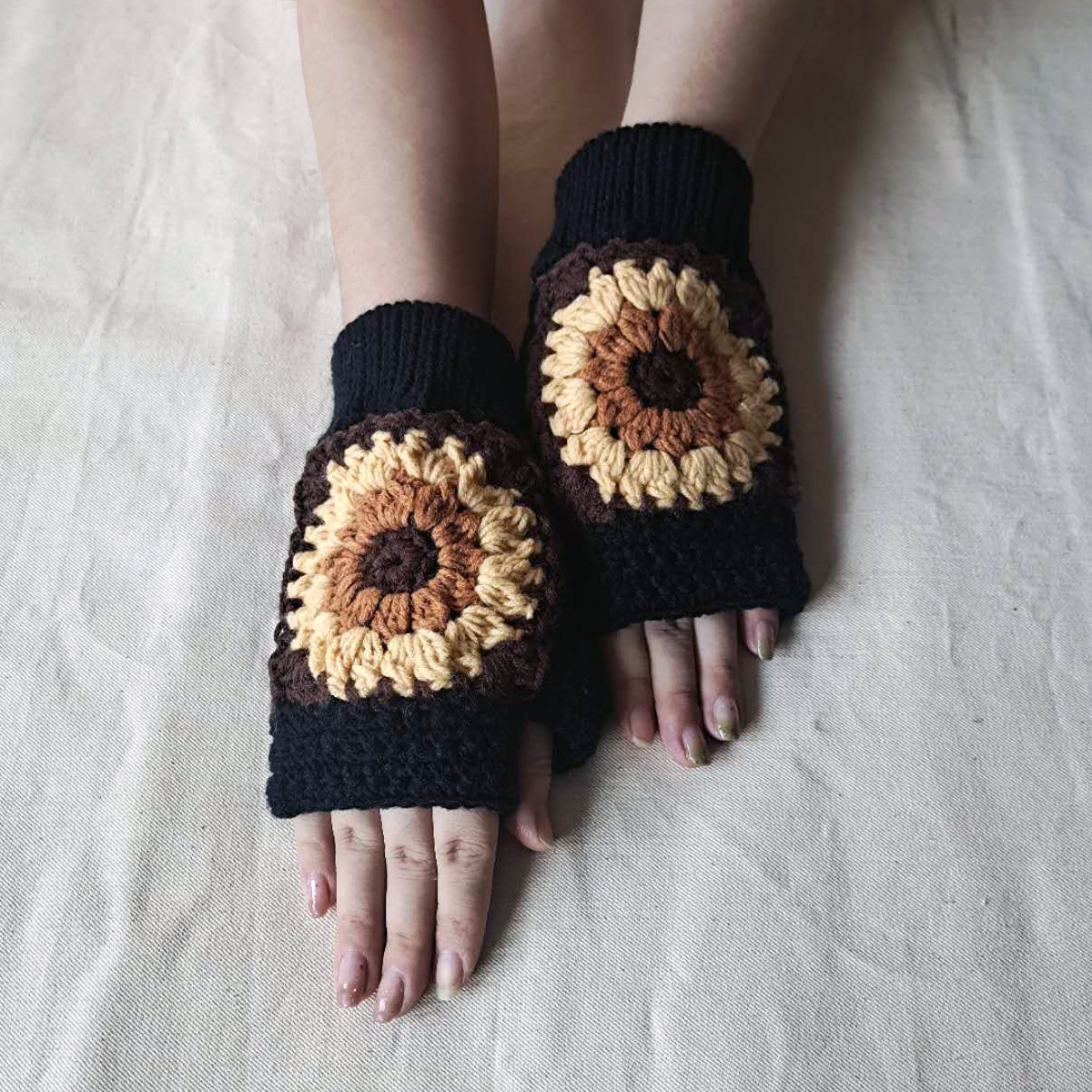 아마존 독립 역 교차 국경 가을과 겨울 새로운 수제 해바라기 방한 따뜻한 반 손가락 양모 장갑 여성용