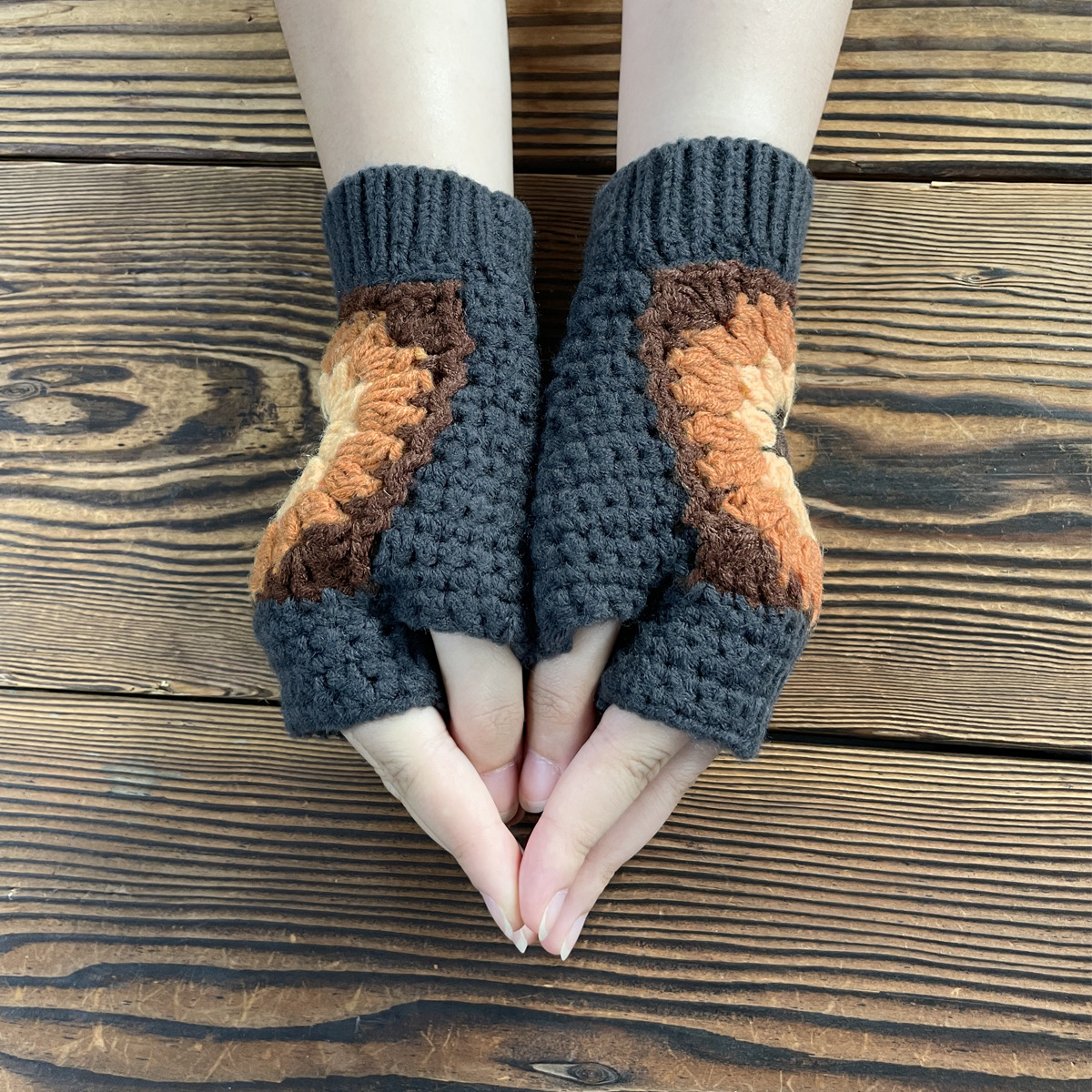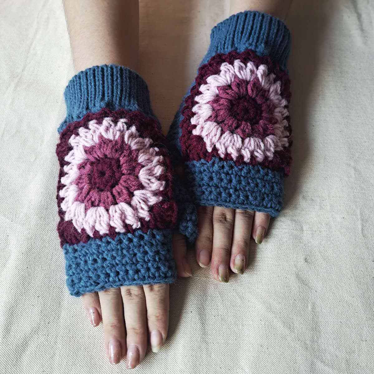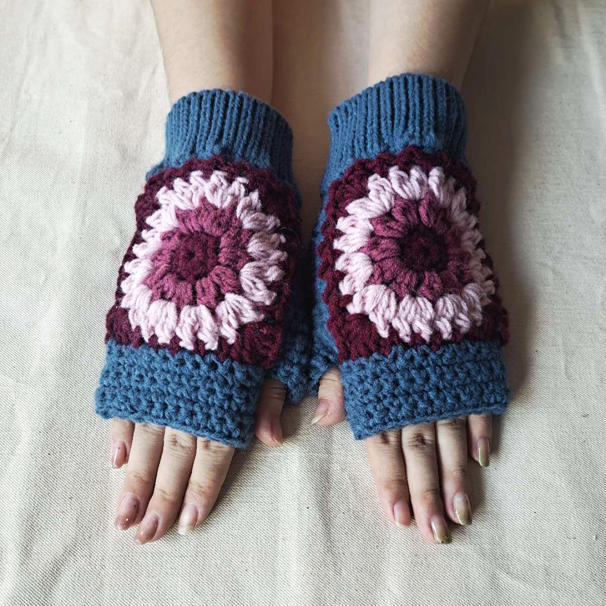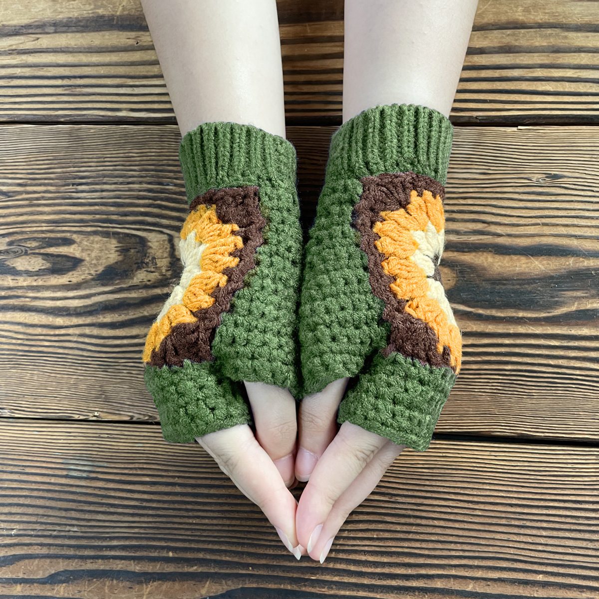 아마존 독립 역 교차 국경 가을과 겨울 새로운 수제 해바라기 방한 따뜻한 반 손가락 양모 장갑 여성용