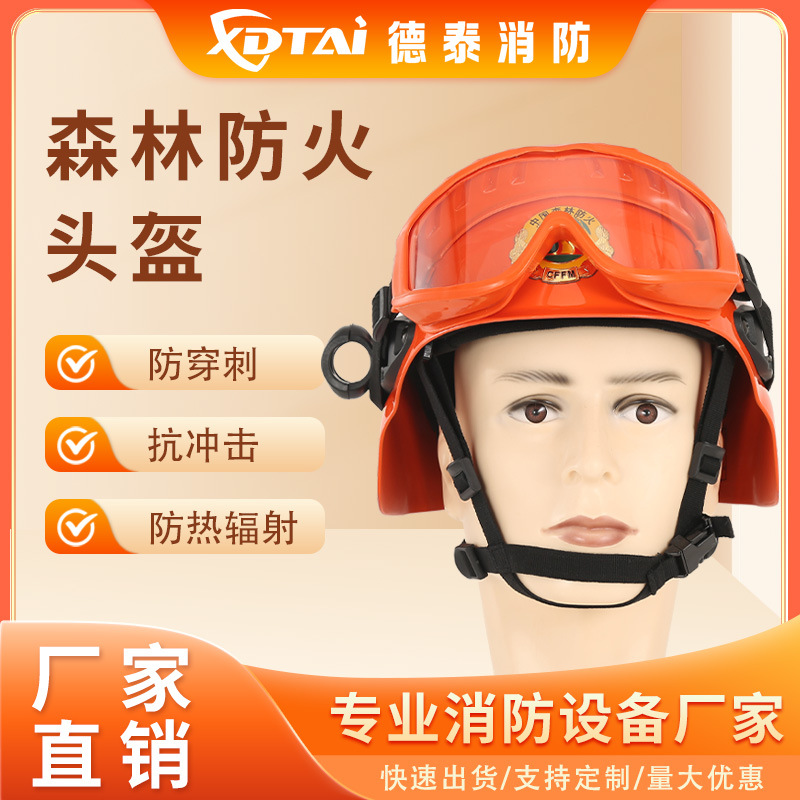 XDATI 산불 방지 보호 헬멧 안전 방염 고글 포함 손전등 반헬멧 방화 오렌지색