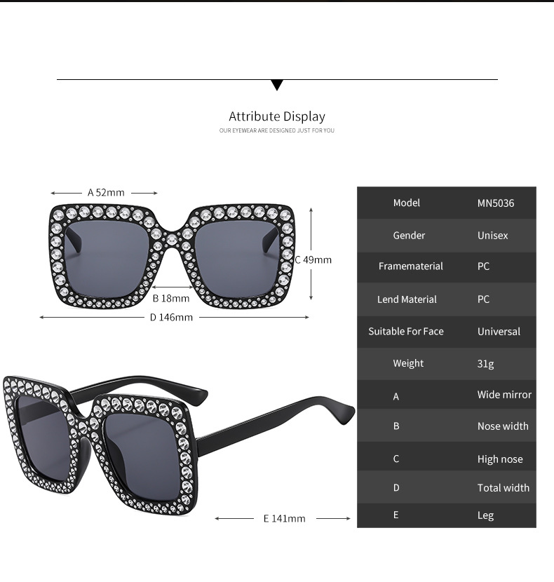 새로운 유럽과 미국 패션 대형 프레임 안티 다이아몬드 선글라스 고급 석고 스트리트 촬영 트렌디한 크로스 보더 선글라스