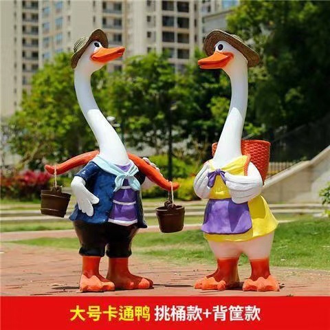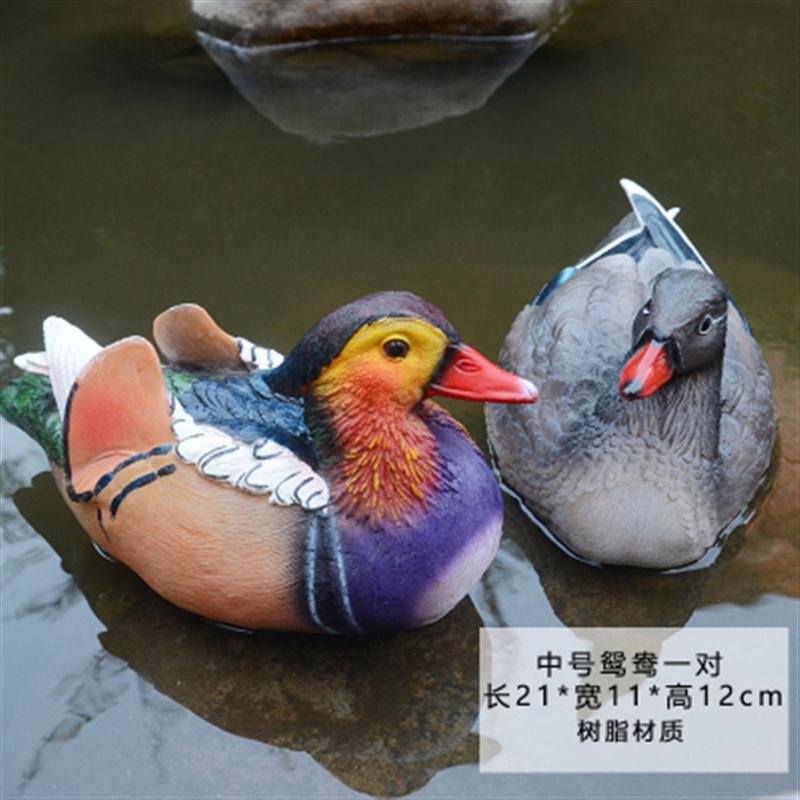 시뮬레이션 작은 노란 오리 장식품 야외 정원 안뜰 수지 오리 만다린 오리 동물 조각 모델 창작 공예스토어 가기