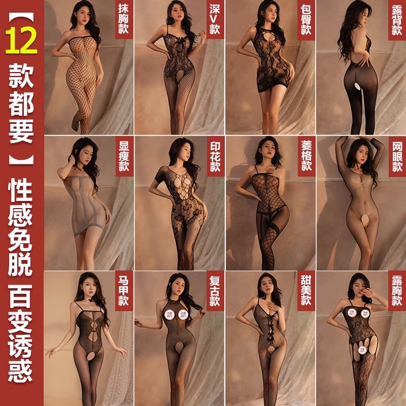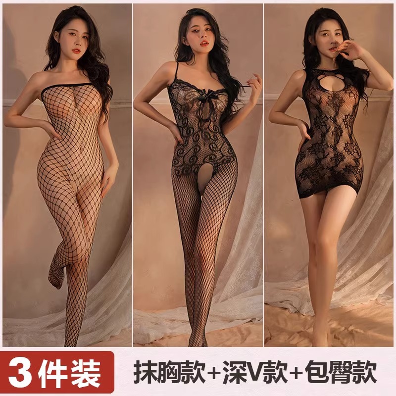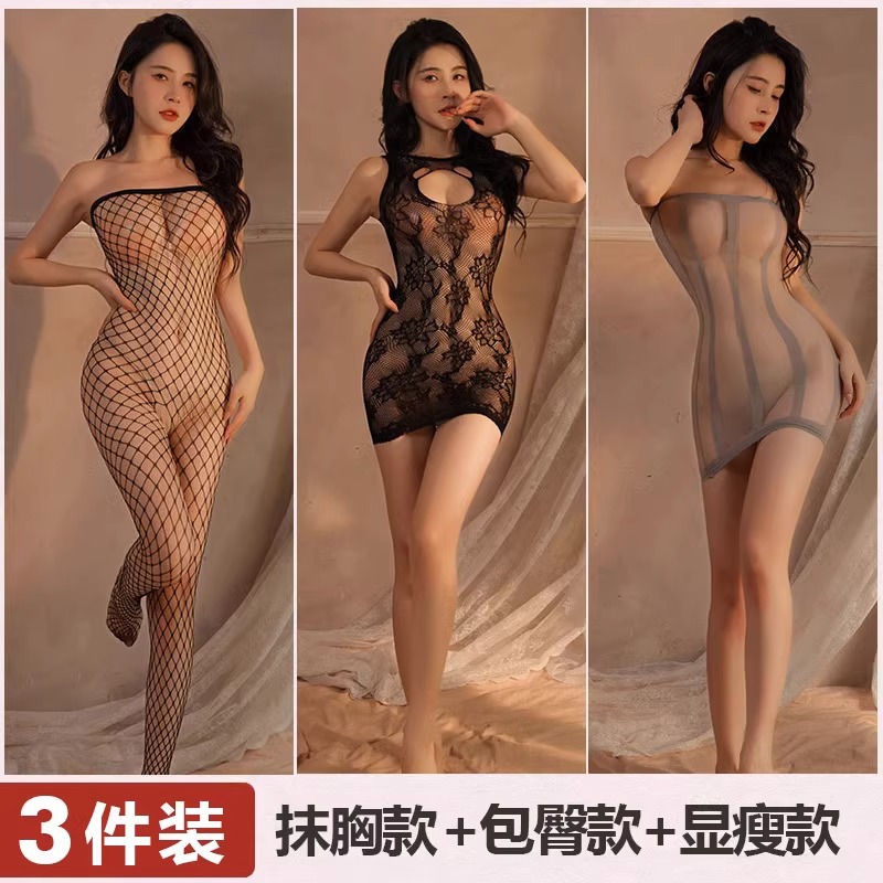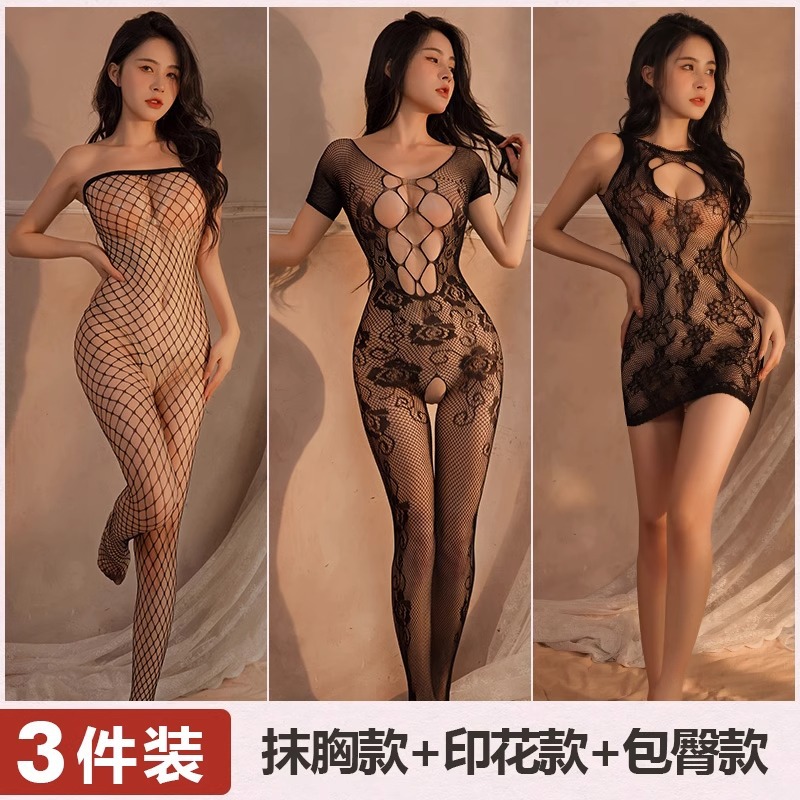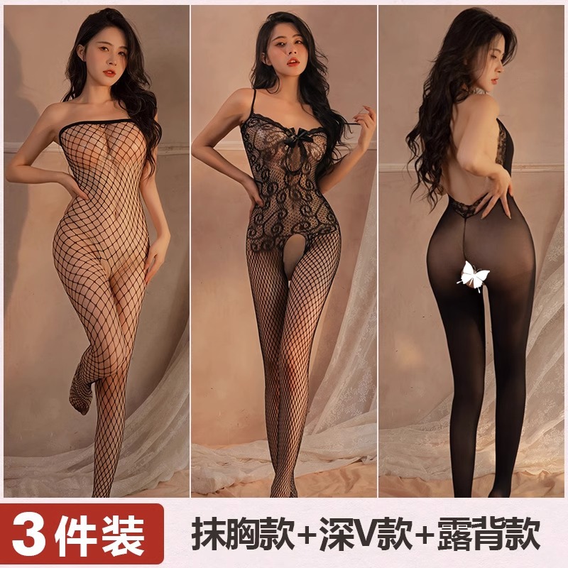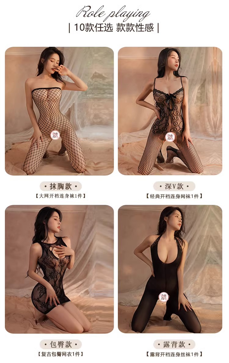 Mei Naier 섹시한 망사 점프 슈트 잠옷 힙 스커트 긴팔 백리스 블랙 실크 바디 슈트 대형 사이즈스토어 가기