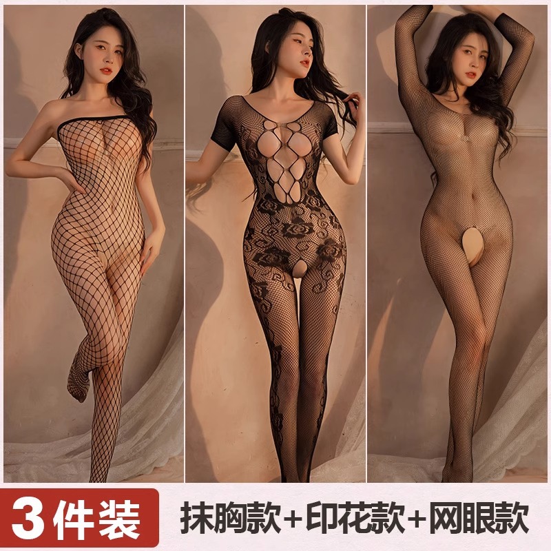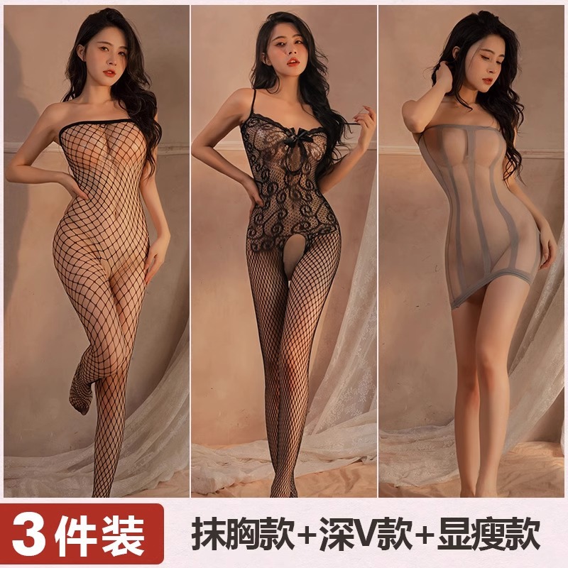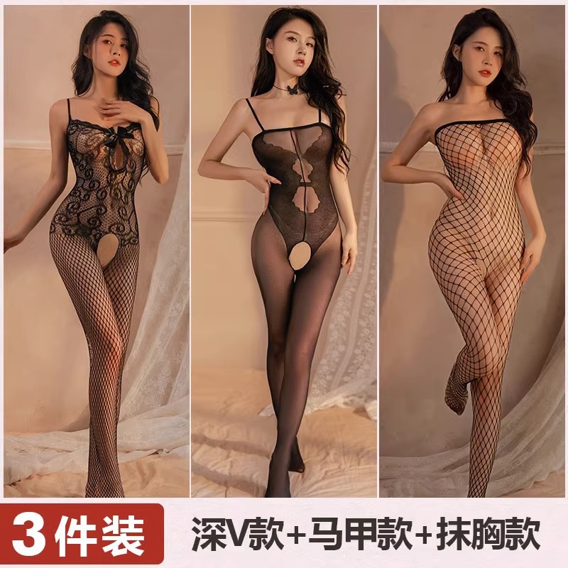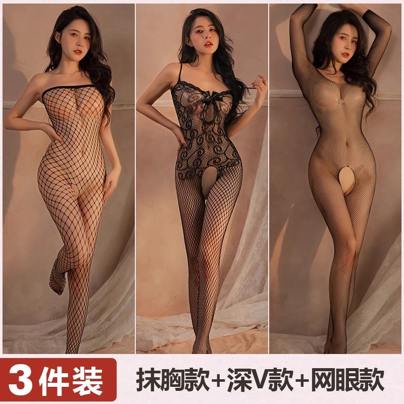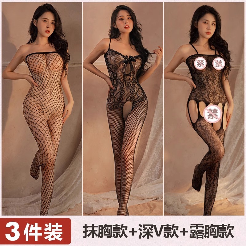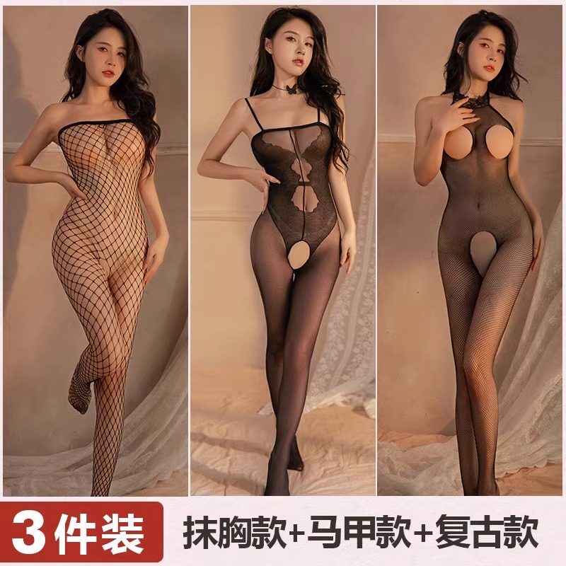 Mei Naier 섹시한 망사 점프 슈트 잠옷 힙 스커트 긴팔 백리스 블랙 실크 바디 슈트 대형 사이즈스토어 가기