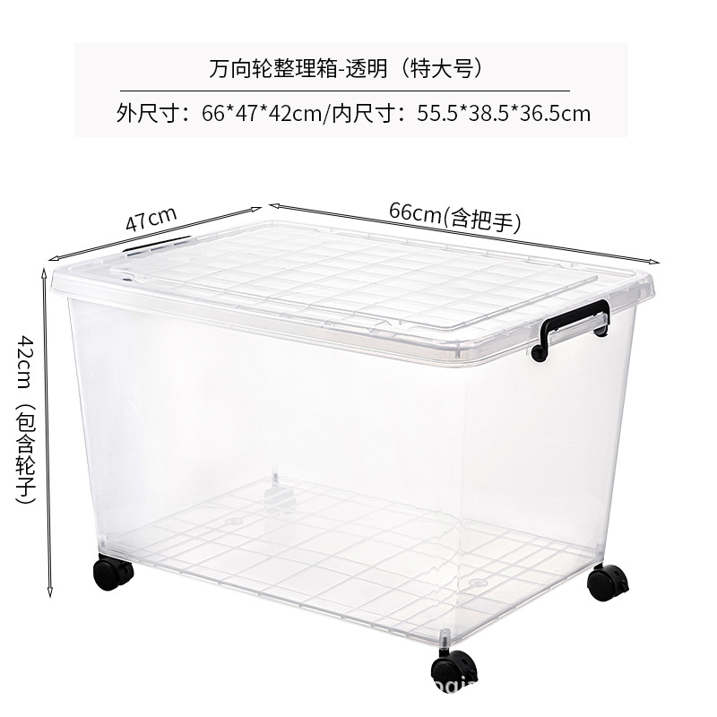 바퀴가 달린 가정용 두꺼운 보관함 초대형 투명 보관함 의류 어린이 장난감 모자 및 유아 이불 기숙사 마감스토어 가기