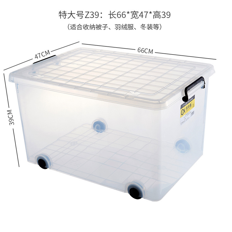 바퀴가 달린 가정용 두꺼운 보관함 초대형 투명 보관함 의류 어린이 장난감 모자 및 유아 이불 기숙사 마감