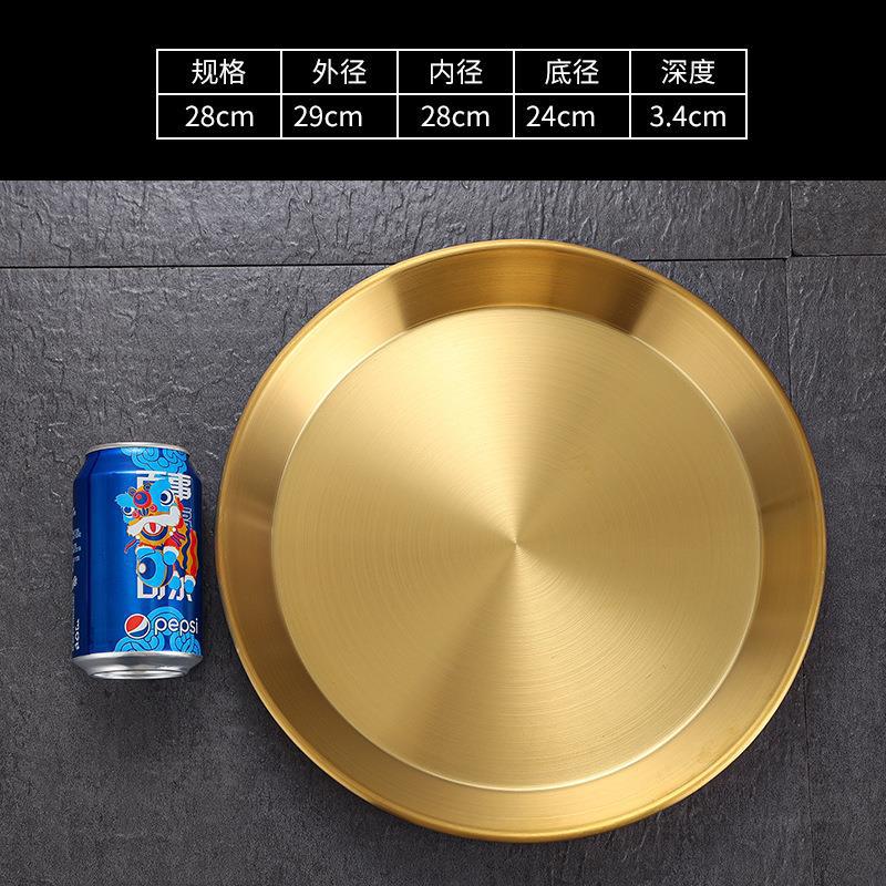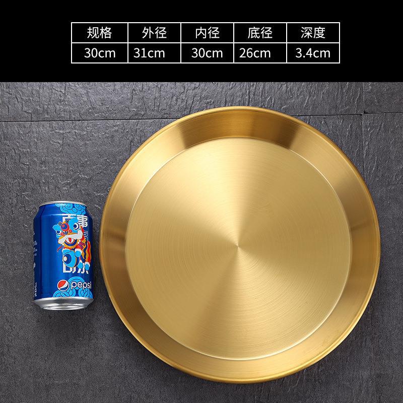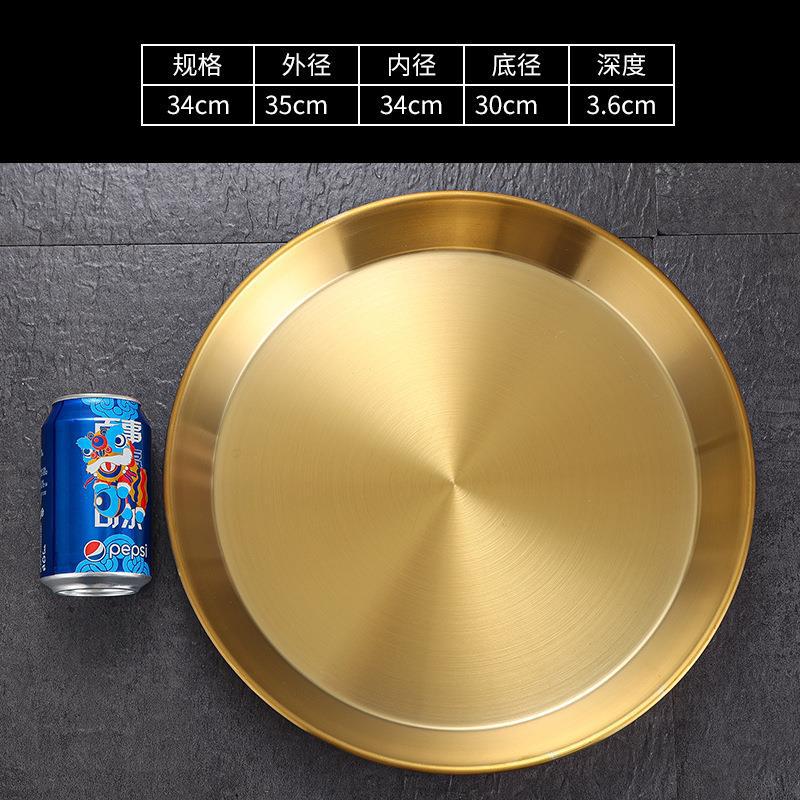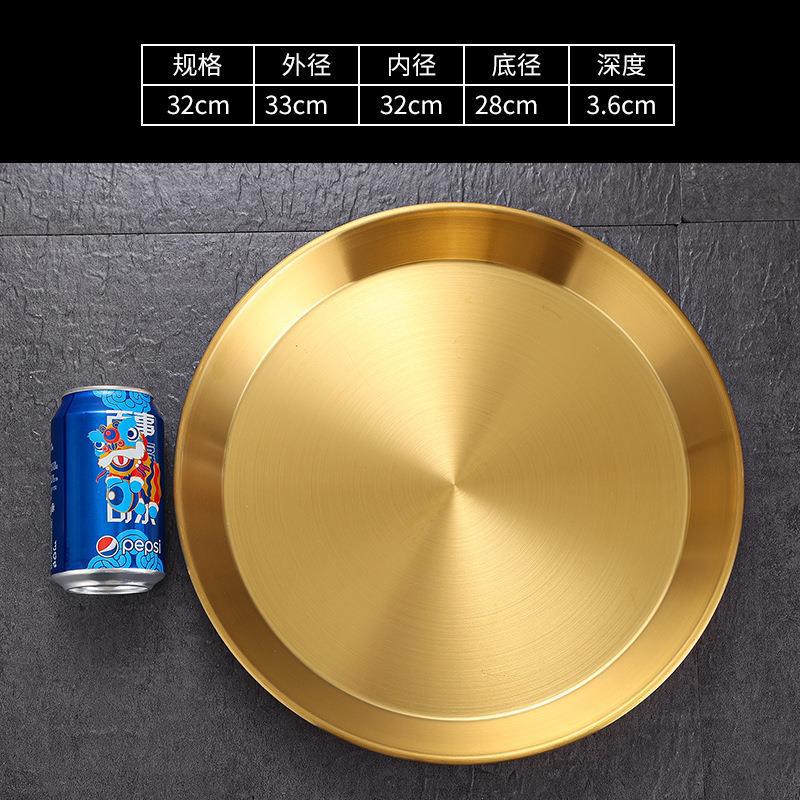 한국식 스테인레스 해산물 접시 골드 대형 플랫 트레이 피자 디스크 뷔페 요리 케이크 딥 플레이트 도매스토어 가기