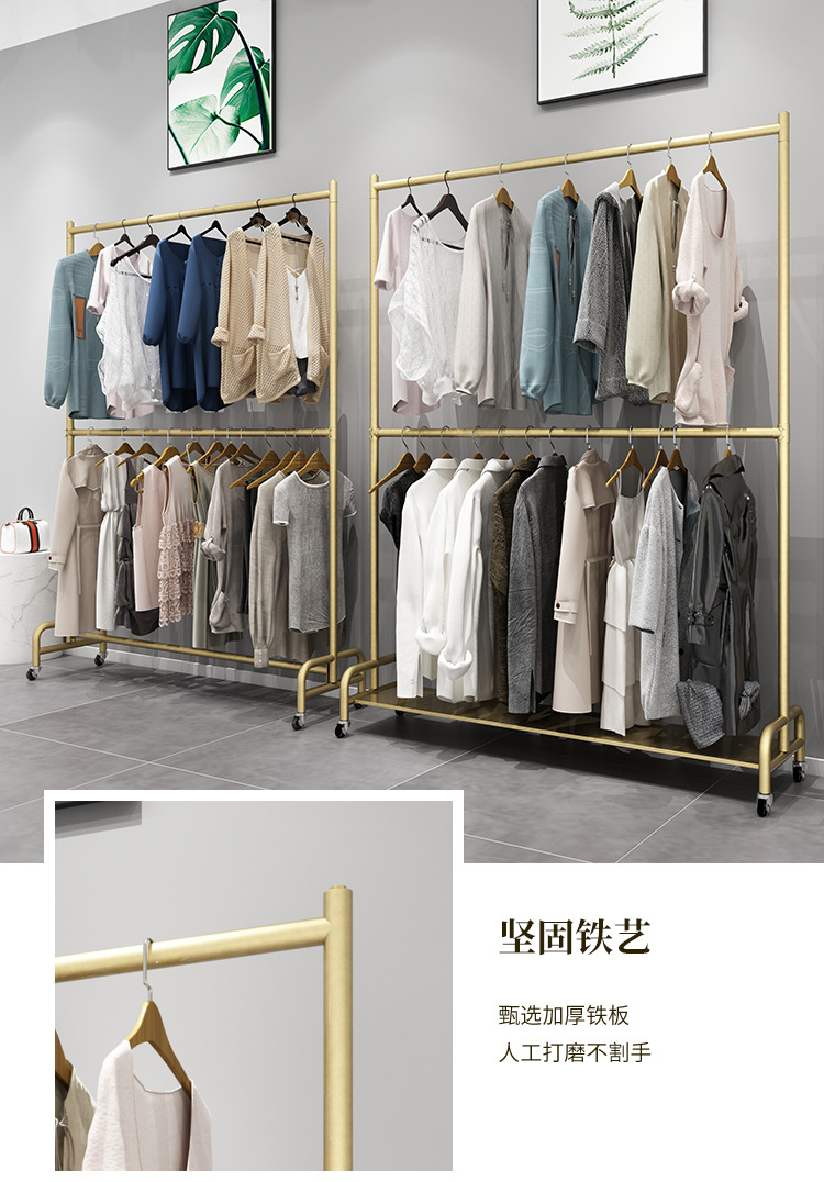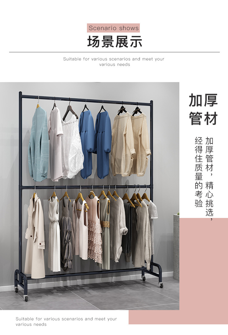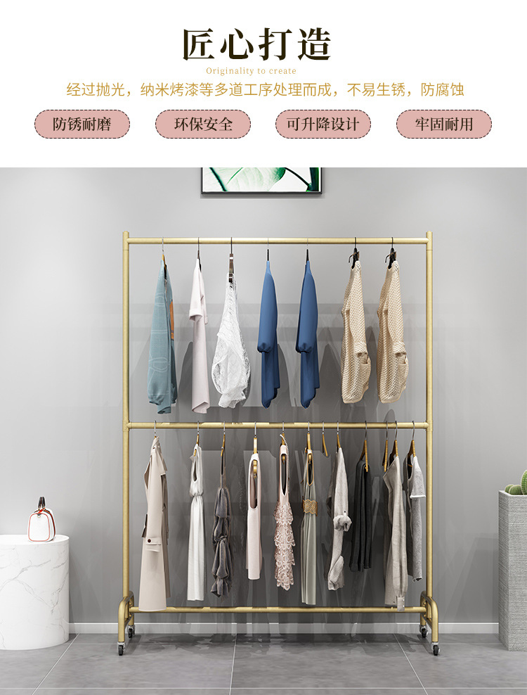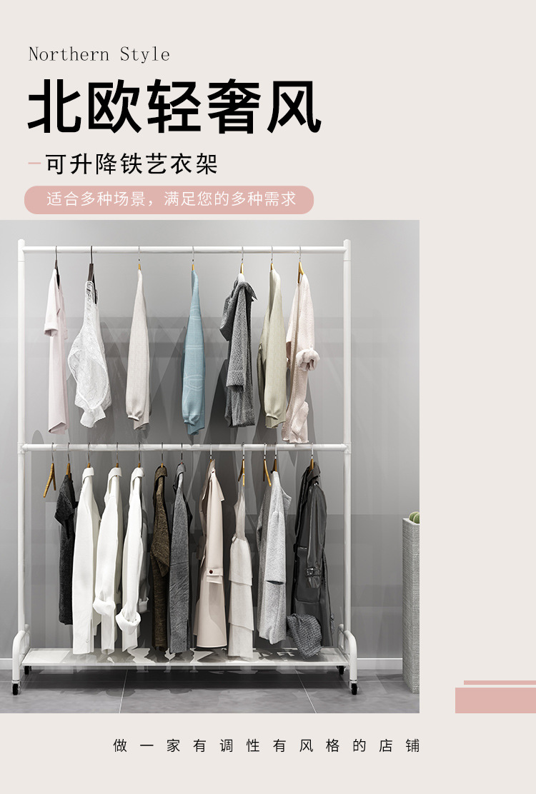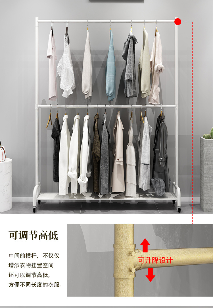 바퀴 조절 가능한 리프팅 발코니 건조 랙이있는 이동식 2 중 의류 매장 디스플레이 랙 플로어 스탠딩 행거스토어 가기