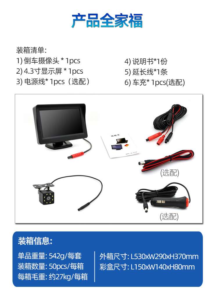 • 4.3 인치 HD 차량용 디스플레이, 카메라 반전, 바늘 4 개