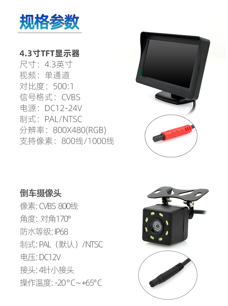 • 4.3 인치 HD 차량용 디스플레이 카메라 AV 헤드 반전