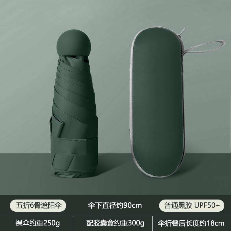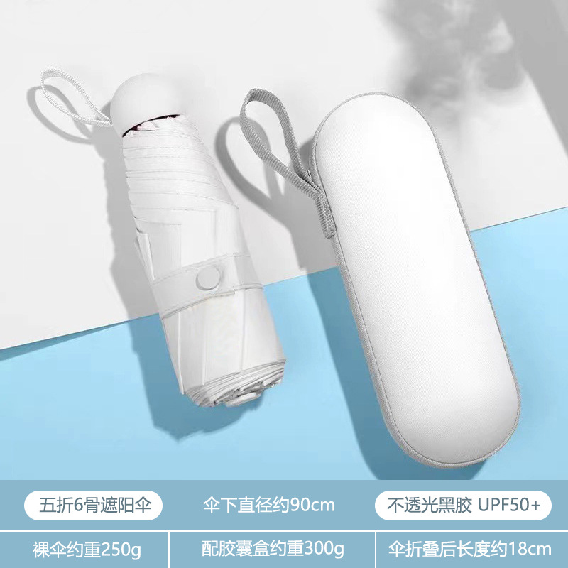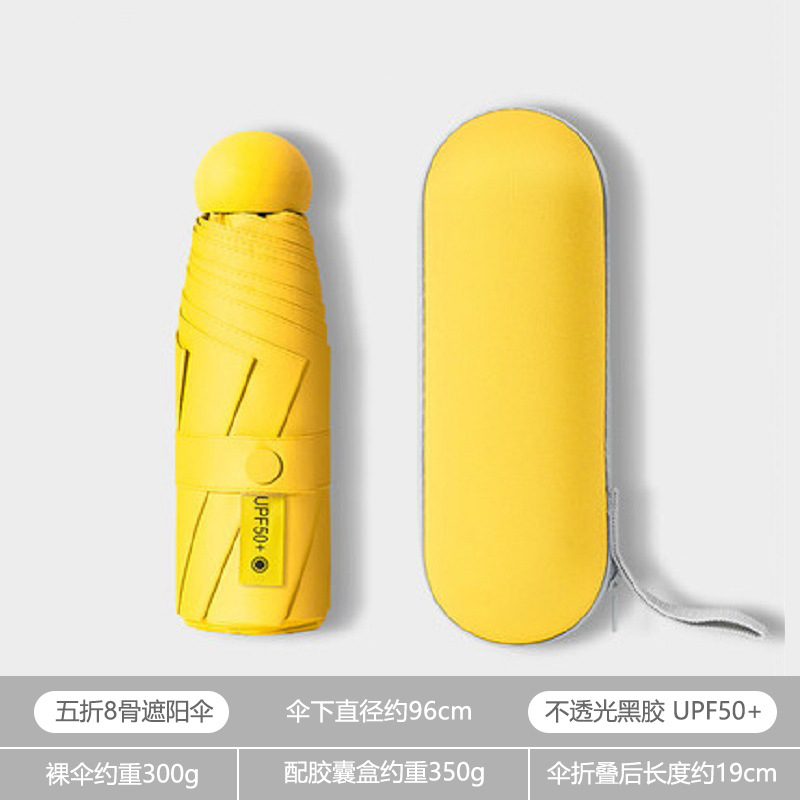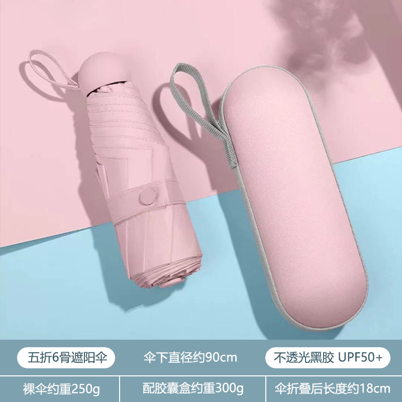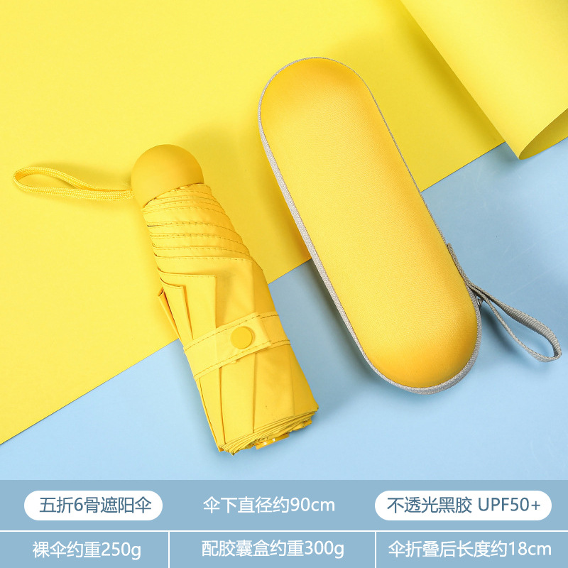 휴대용 우산 미니 소형 5 배 우산 학생 캡슐 우산 햇빛과 비 이중 사용 여성 자외선 차단제 태양 우산 도매