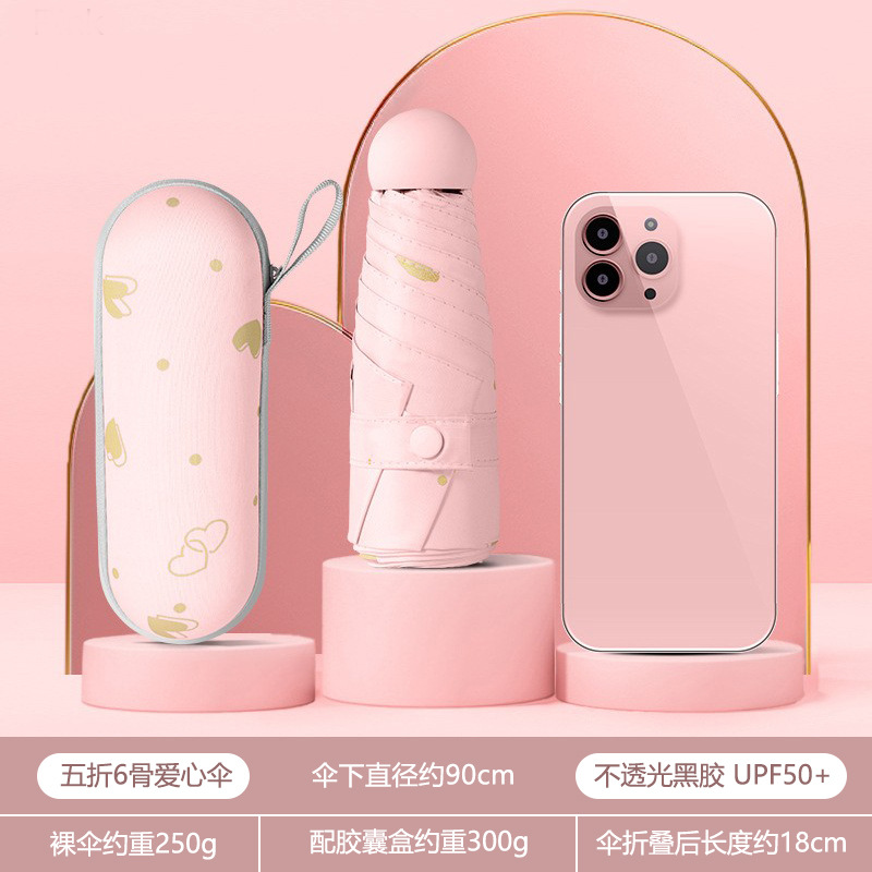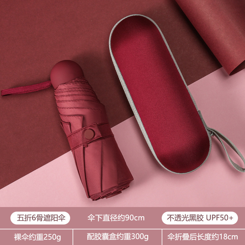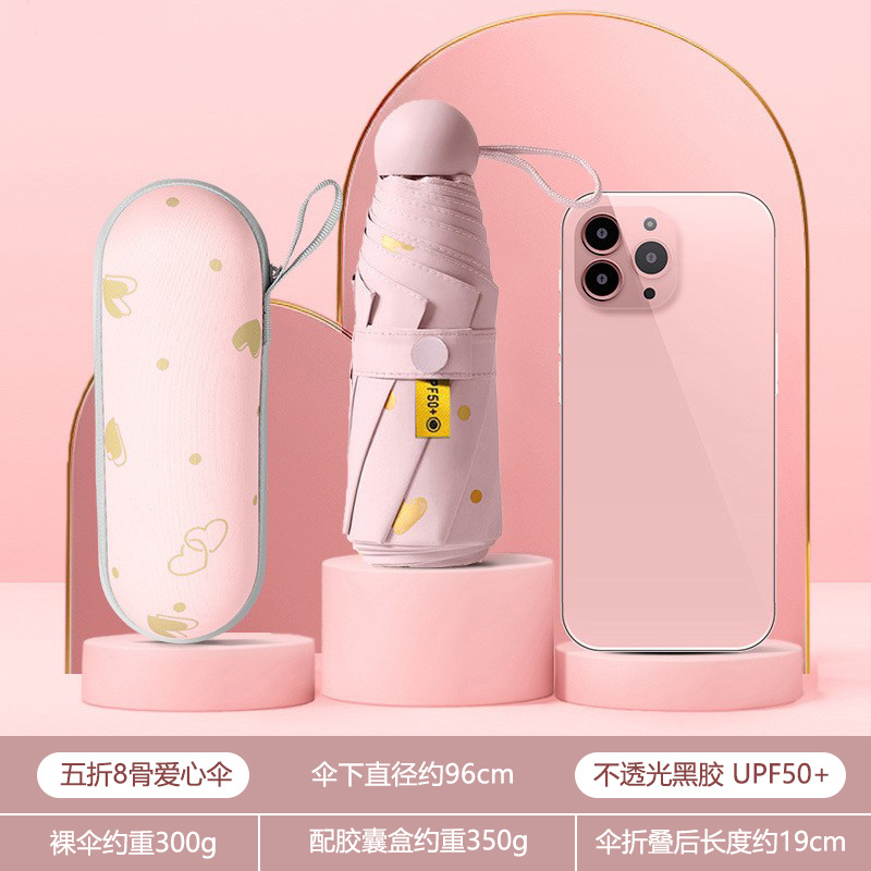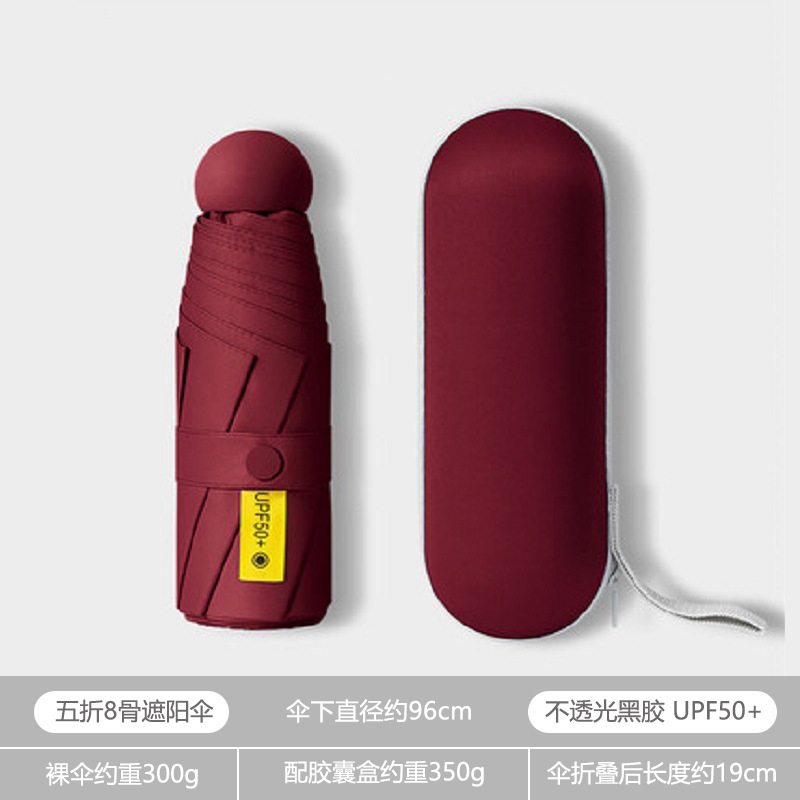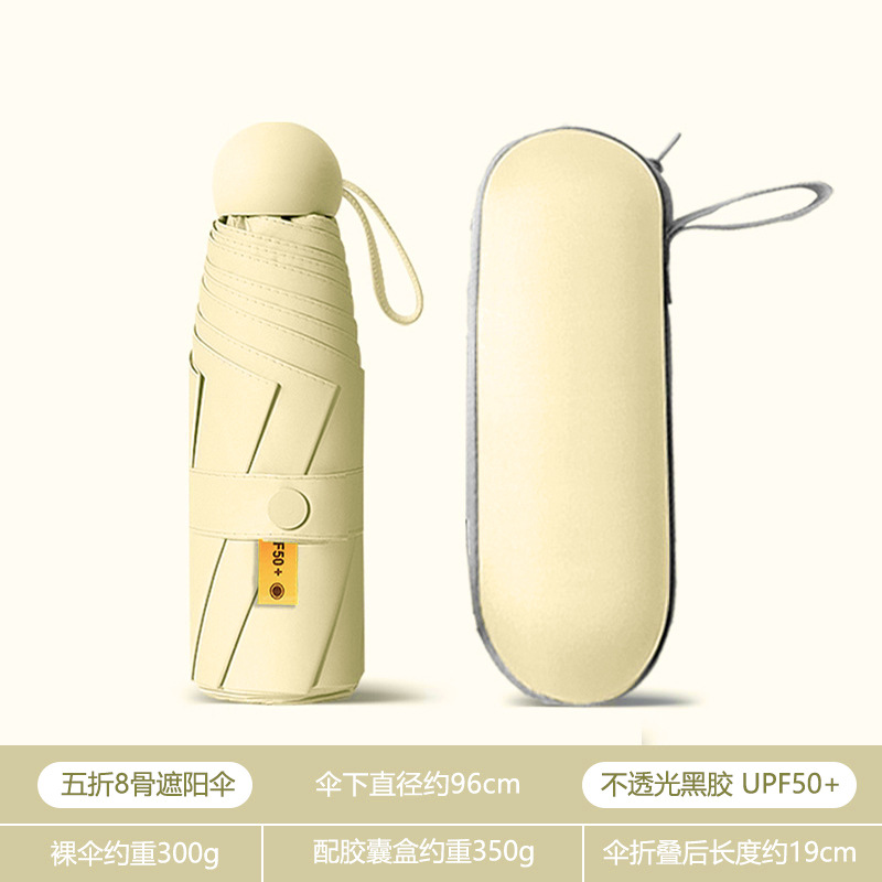 휴대용 우산 미니 소형 5 배 우산 학생 캡슐 우산 햇빛과 비 이중 사용 여성 자외선 차단제 태양 우산 도매