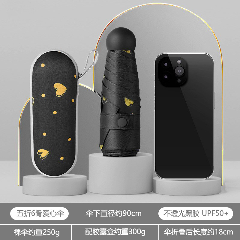 • [러브 블랙] 50% 접기 경량 6 본 블랙 접착제 우산