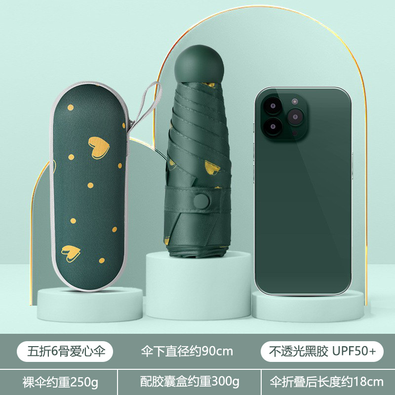 • [러브 다크 그린] 50% 접기 경량 6 본 블랙 접착제 우산