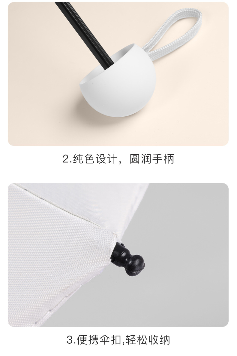 • [러브 라이스 화이트] 50% 접기 경량 6 본 블랙 접착제 우산