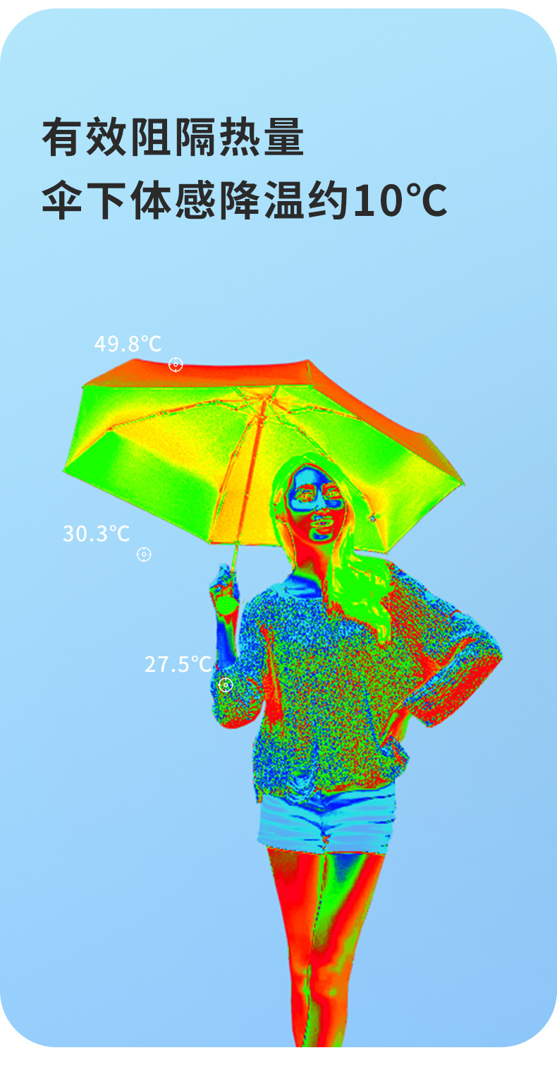 • [단색 하늘색] 50% 접기 경량 6 본 블랙 접착제 우산