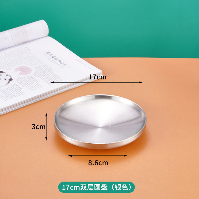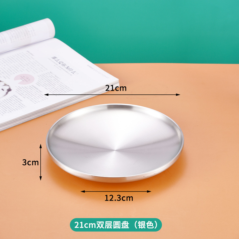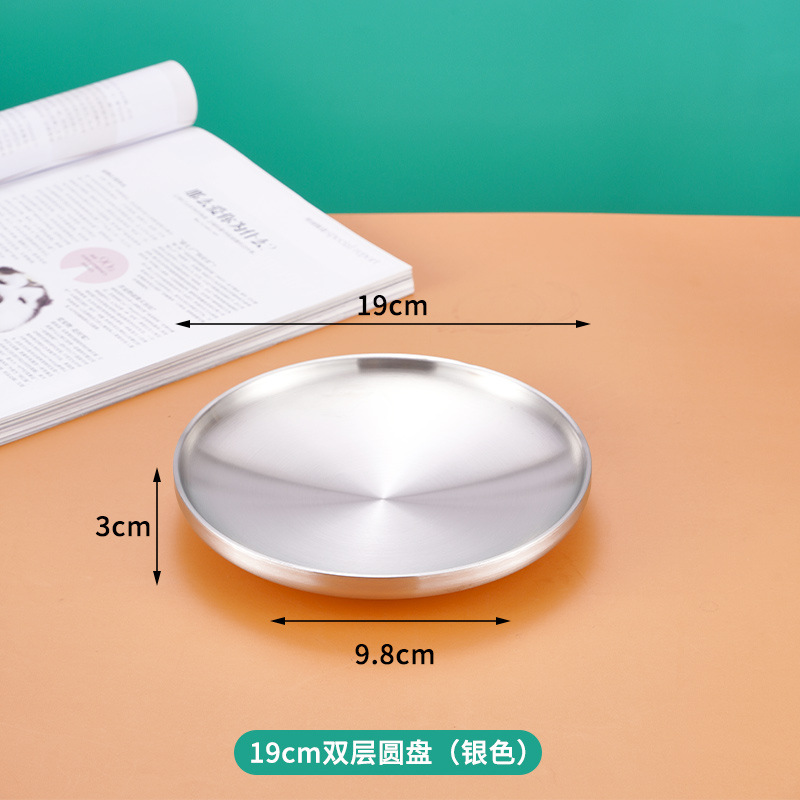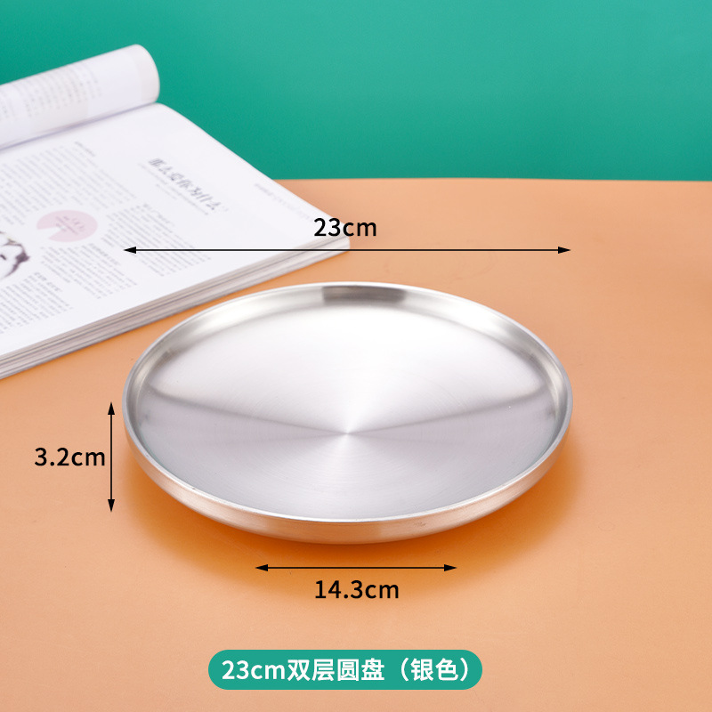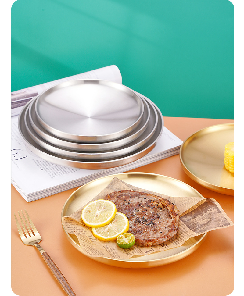 스테인레스 스틸 골든 플레이트 가정용 더블 레이어 단열 디스크 플랫 디너 플레이트 과일 플레이트 접시 플랫 플레이트 바베큐 플레이트