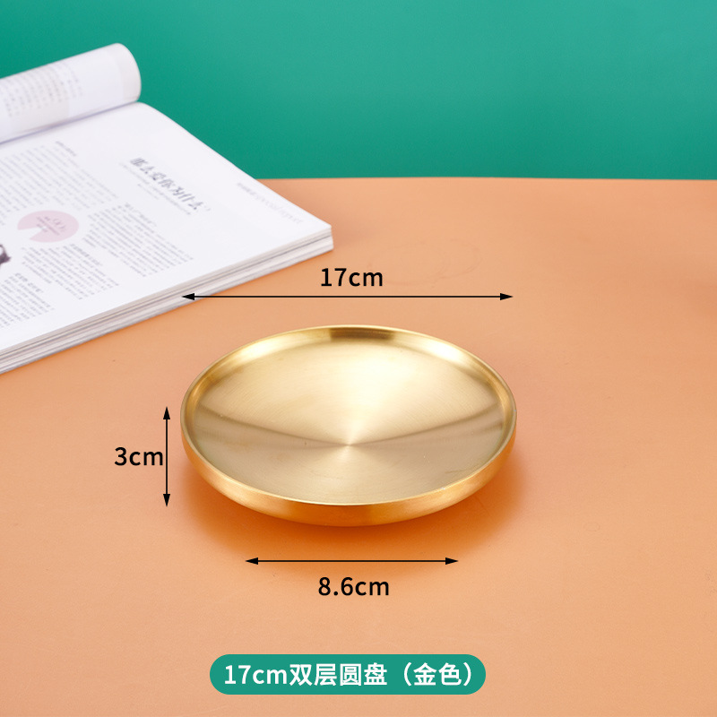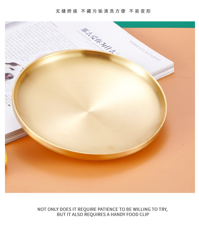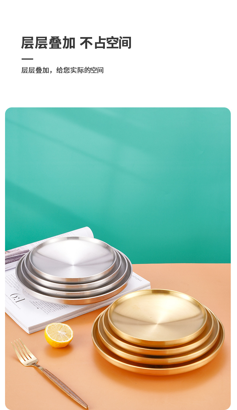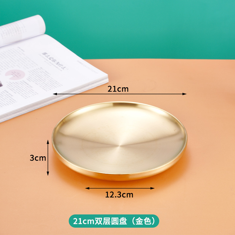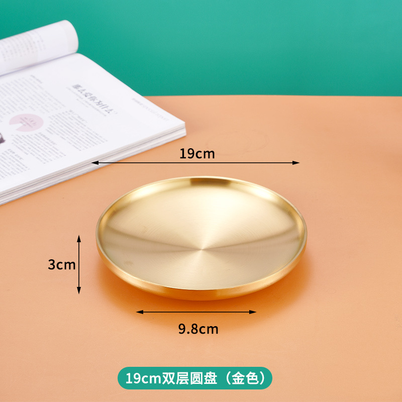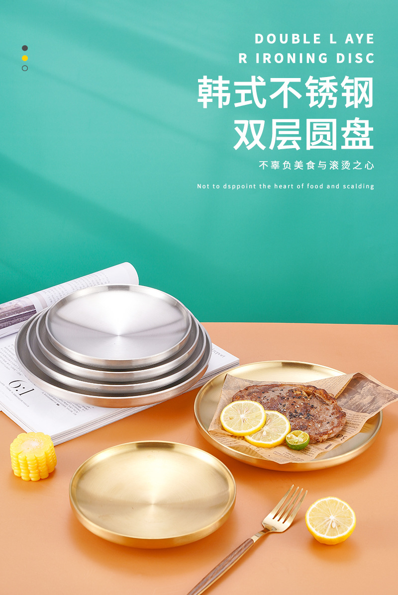 스테인레스 스틸 골든 플레이트 가정용 더블 레이어 단열 디스크 플랫 디너 플레이트 과일 플레이트 접시 플랫 플레이트 바베큐 플레이트스토어 가기