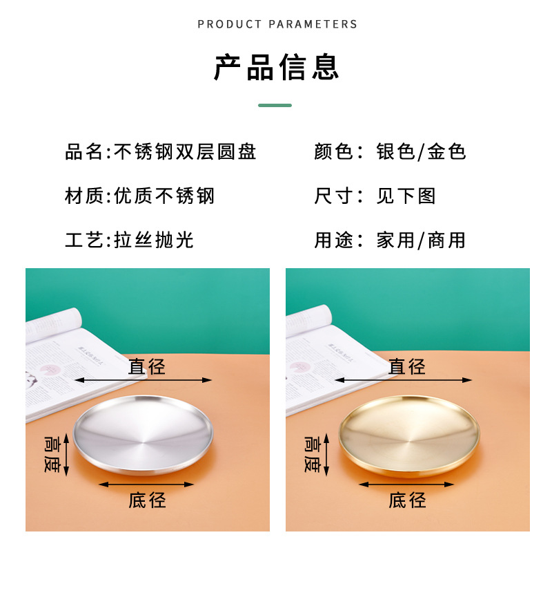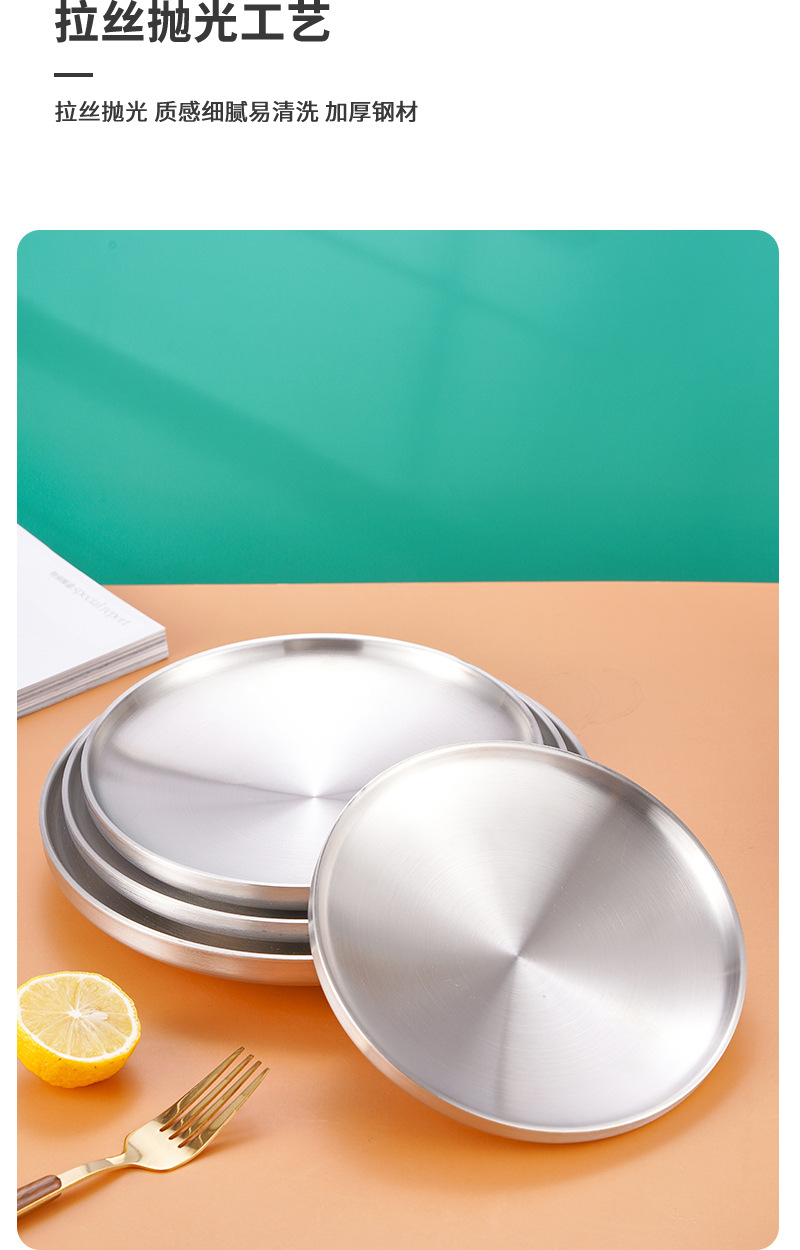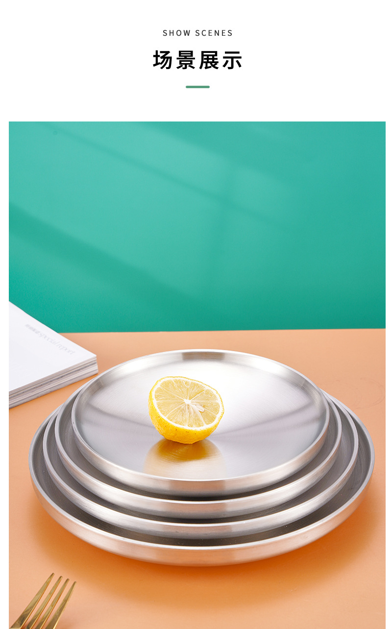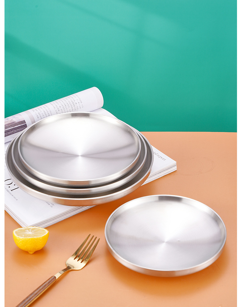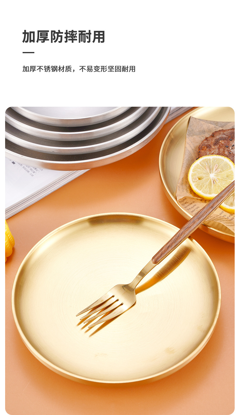 스테인레스 스틸 골든 플레이트 가정용 더블 레이어 단열 디스크 플랫 디너 플레이트 과일 플레이트 접시 플랫 플레이트 바베큐 플레이트스토어 가기