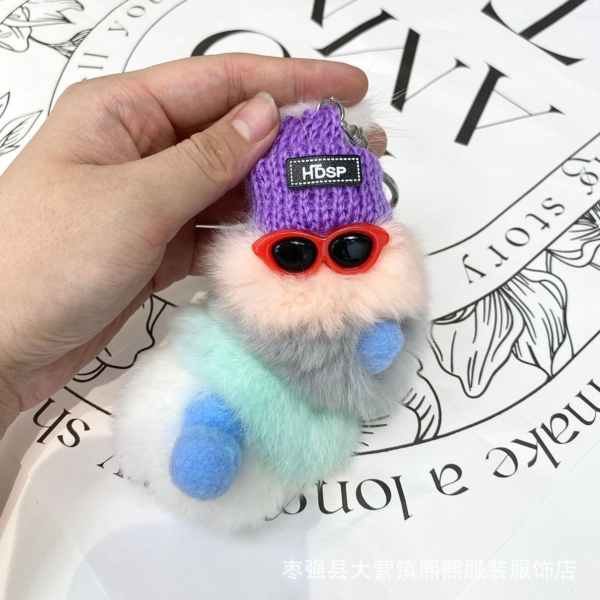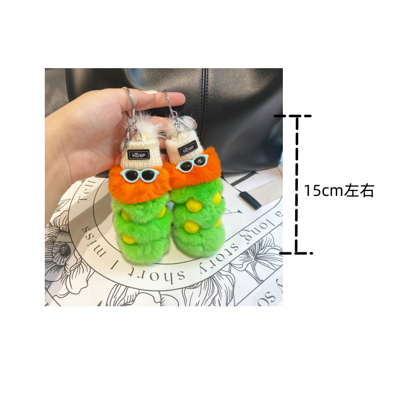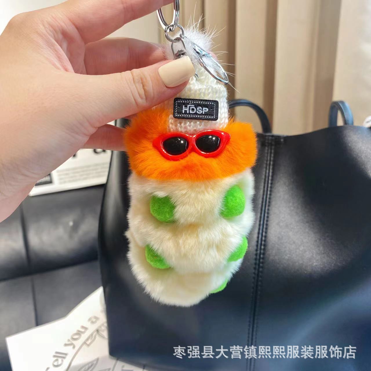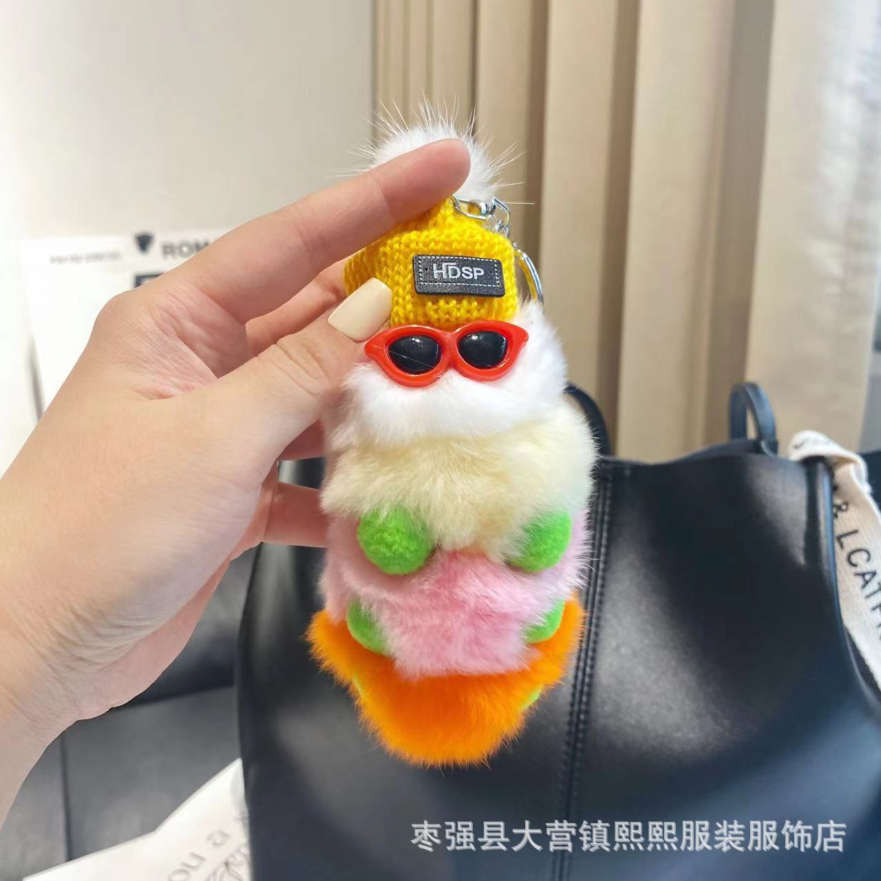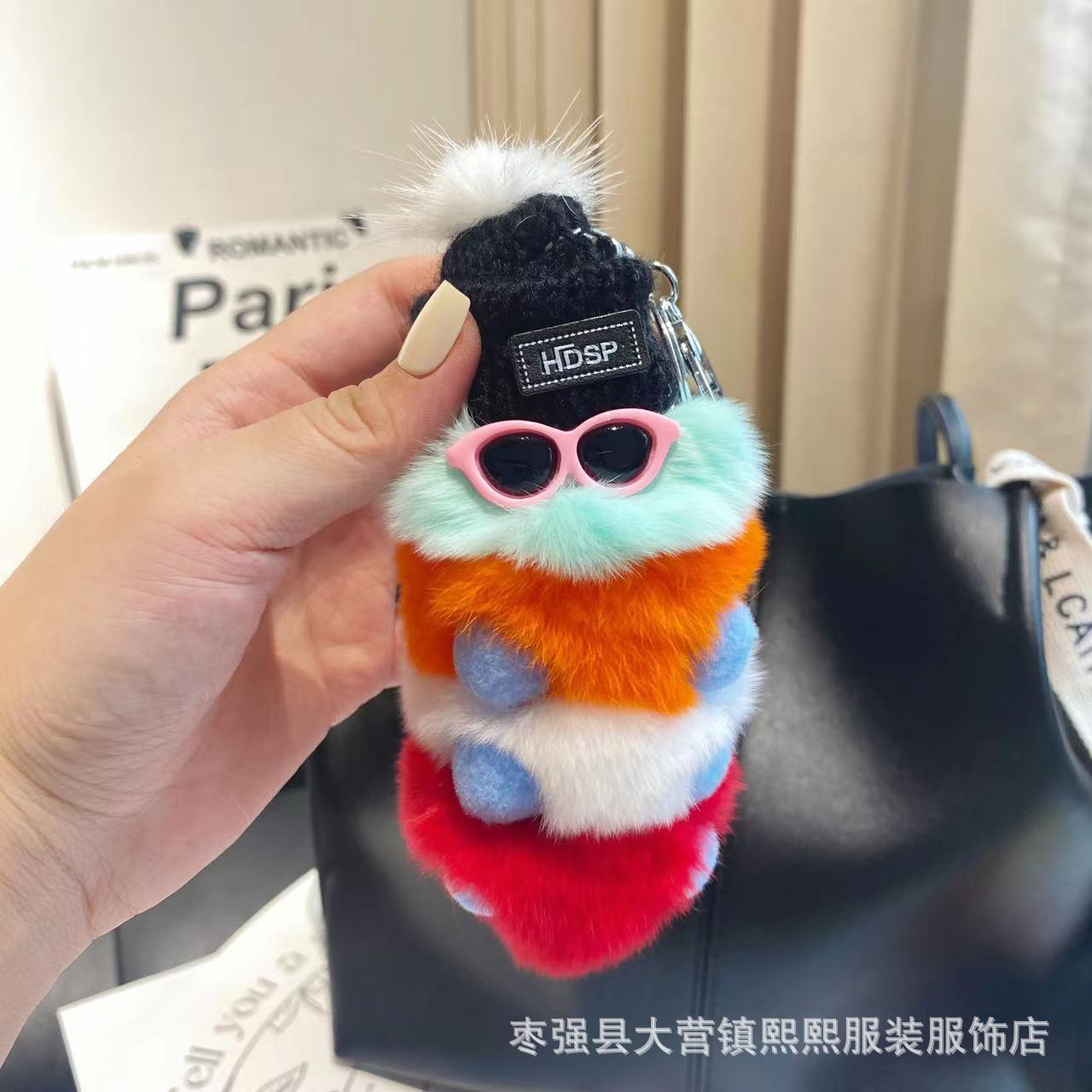 귀여운 진짜 렉스 토끼 모피 애벌레 펜던트 자동차 키 체인 스타 못생긴 귀여운 봉제 인형 가방 펜던트스토어 가기