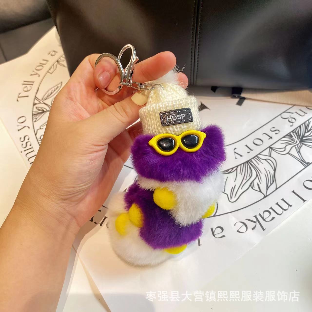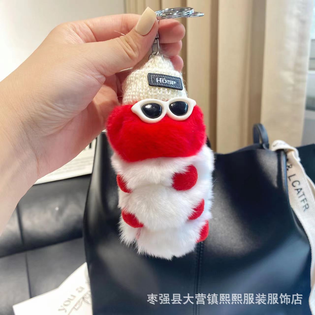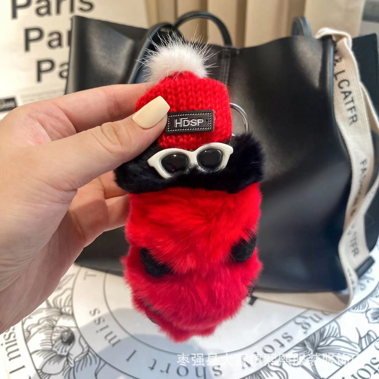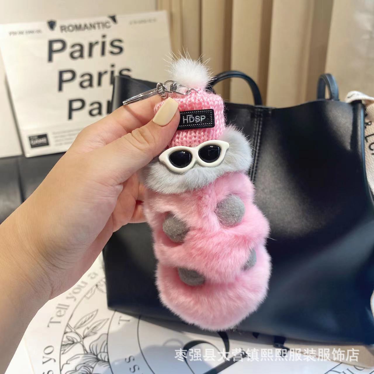 귀여운 진짜 렉스 토끼 모피 애벌레 펜던트 자동차 키 체인 스타 못생긴 귀여운 봉제 인형 가방 펜던트스토어 가기