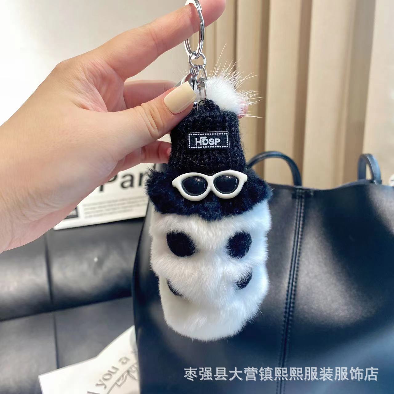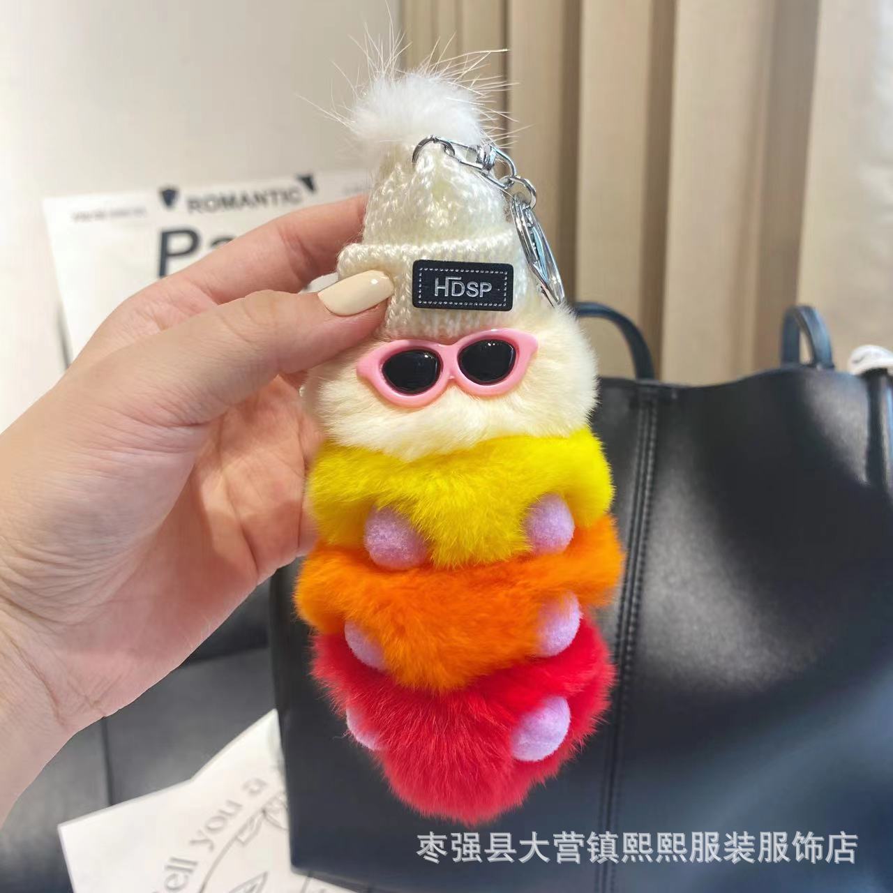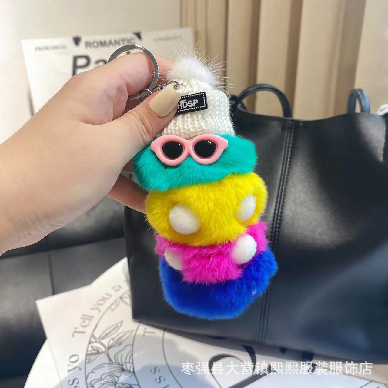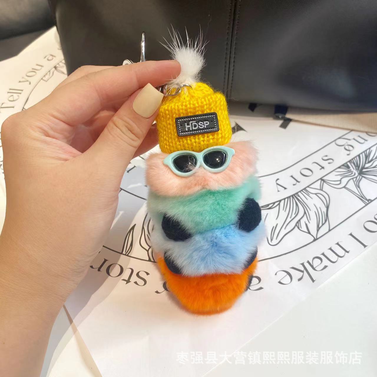 귀여운 진짜 렉스 토끼 모피 애벌레 펜던트 자동차 키 체인 스타 못생긴 귀여운 봉제 인형 가방 펜던트스토어 가기