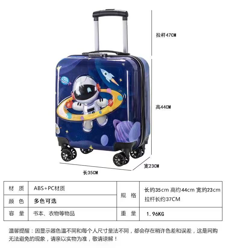 우주비행사 어린이용 트롤리 캐리어, 18인치 회전 바퀴, 어린이 여행 가방, 3D 동물 선물용 기내 반입 가방, 무게 경감스토어 가기