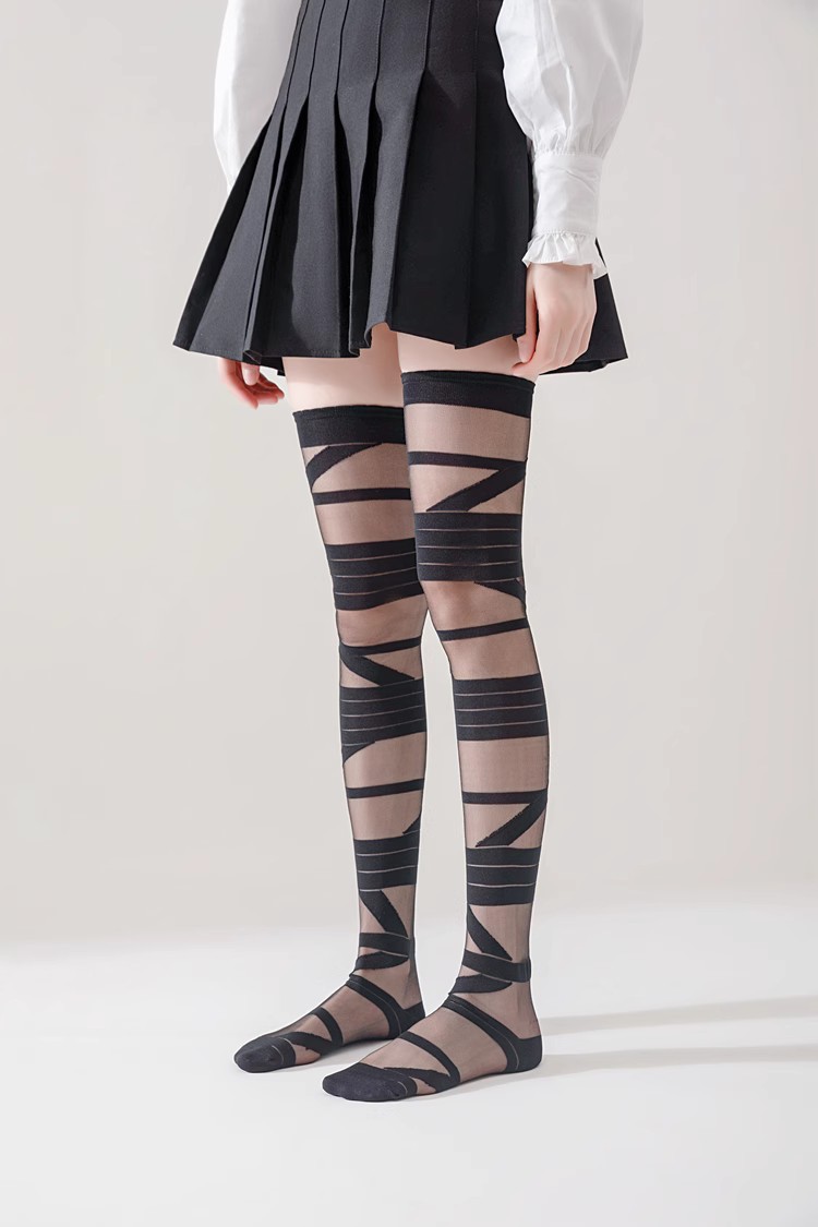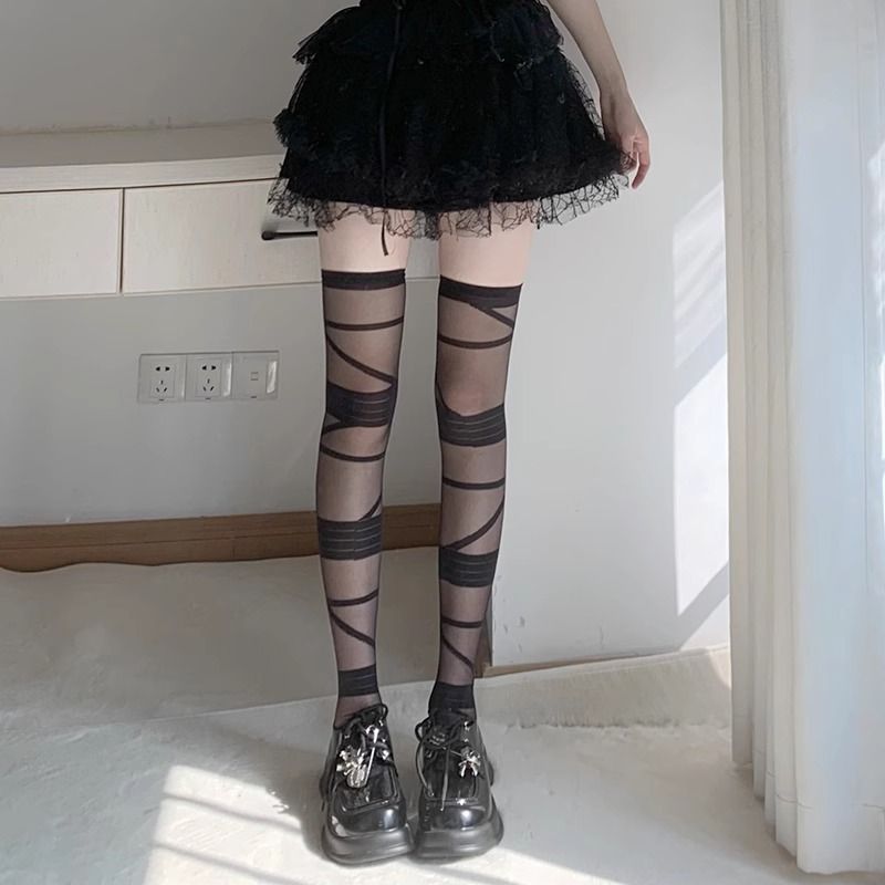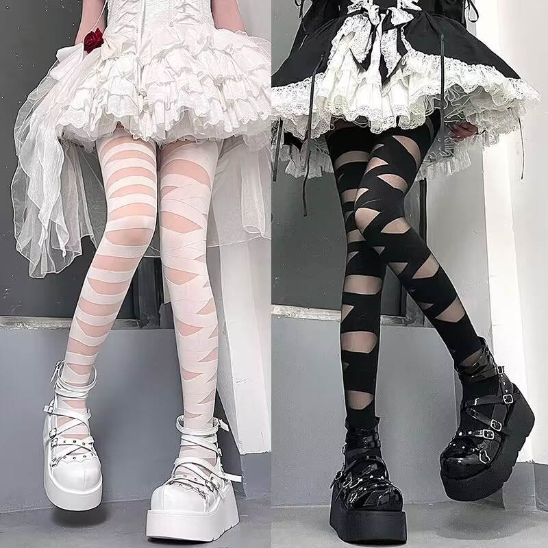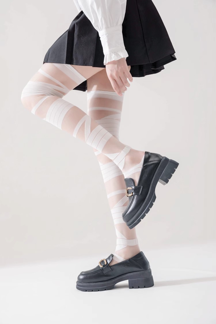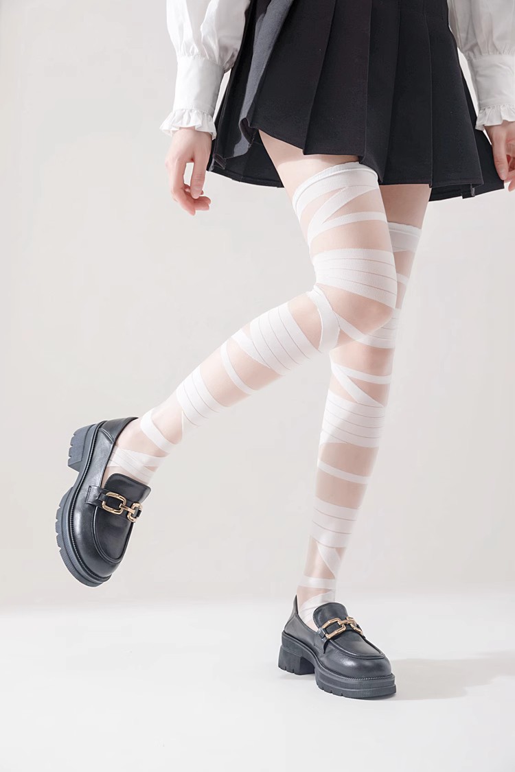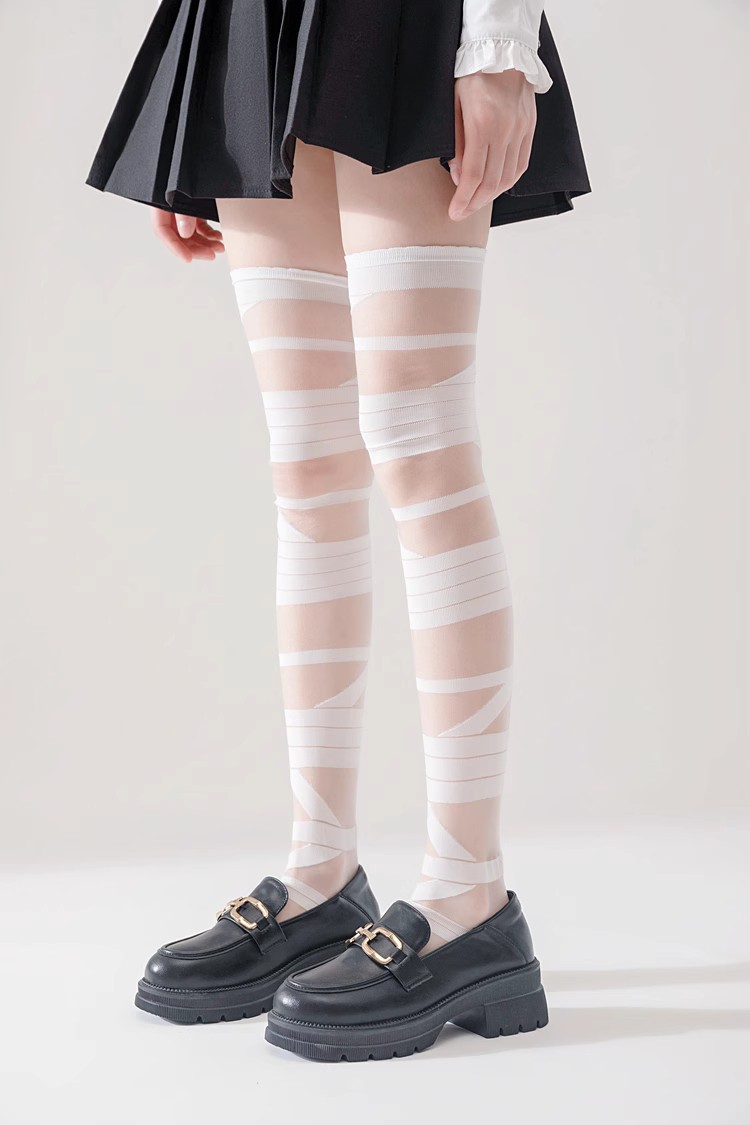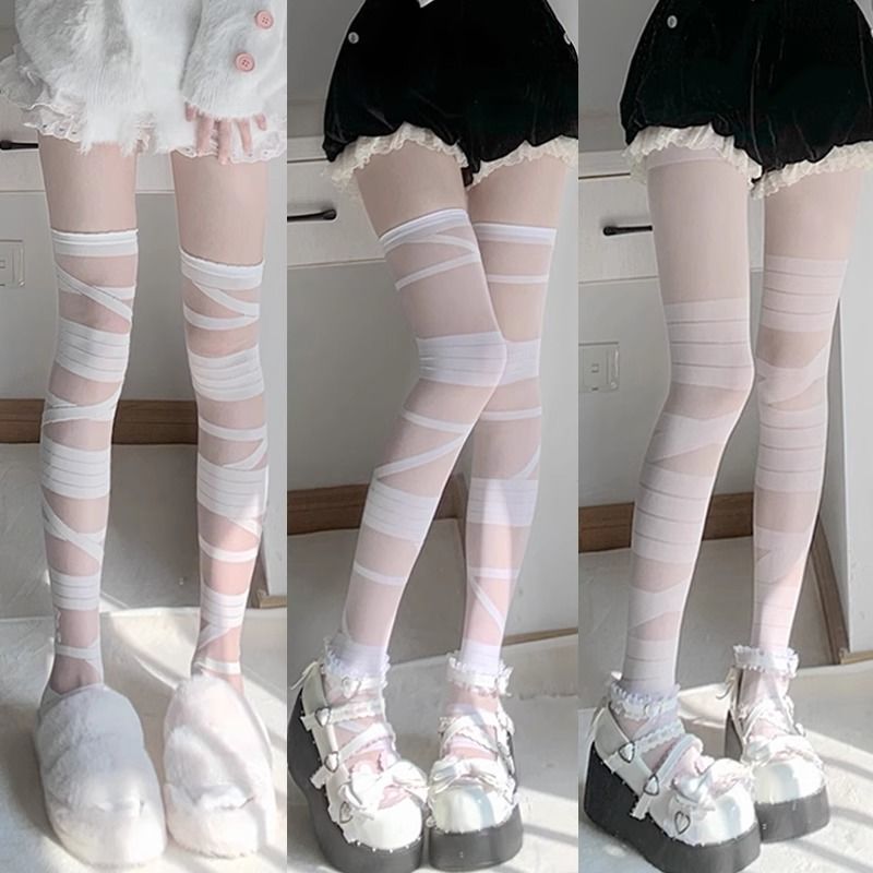 로리타 무릎 스트랩 달콤한 스타킹 무릎 얇은 y2k 뜨거운 소녀 붕대 화이트 실크 jk 송아지 양말 어린이스토어 가기