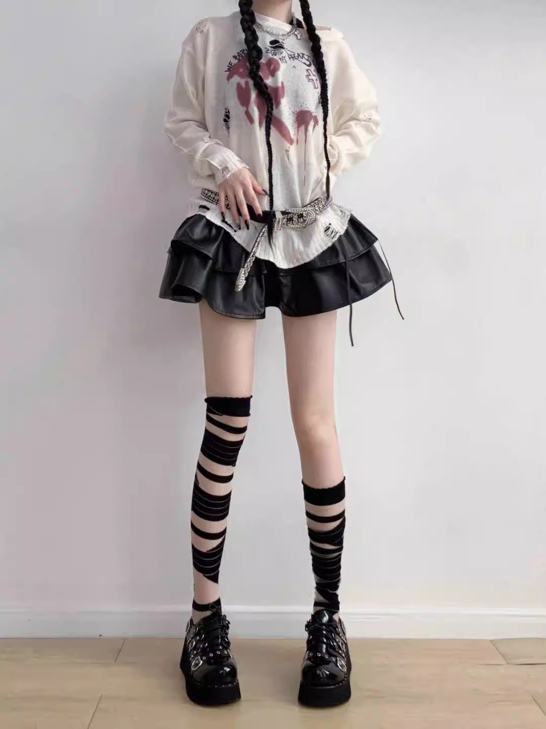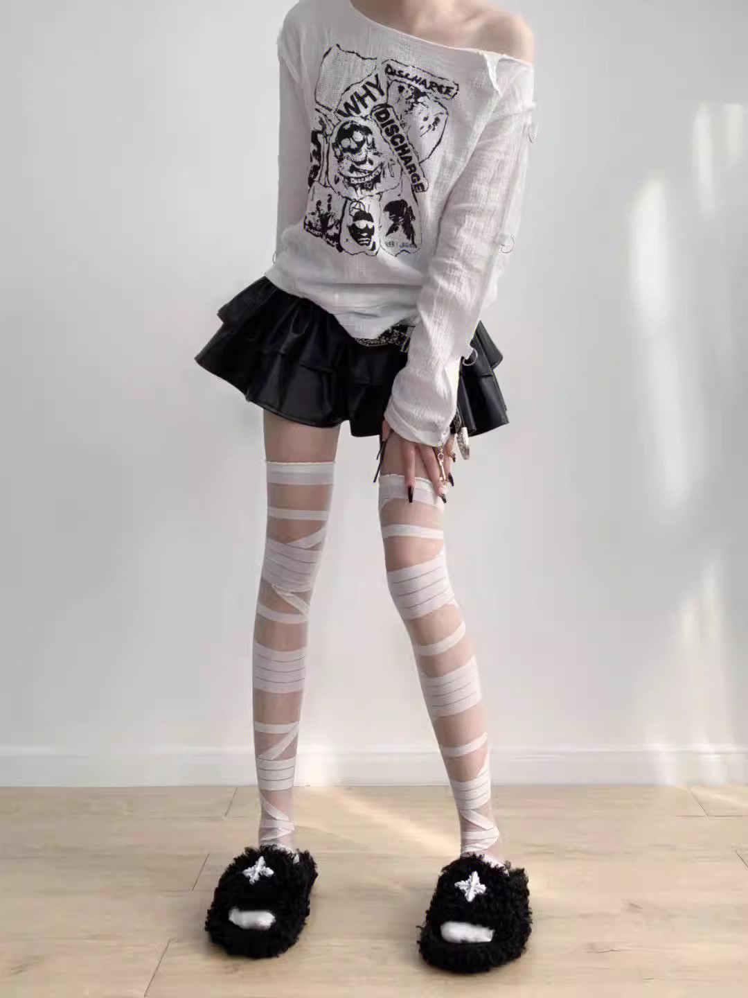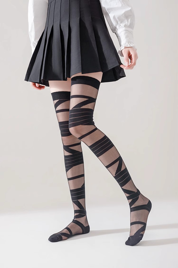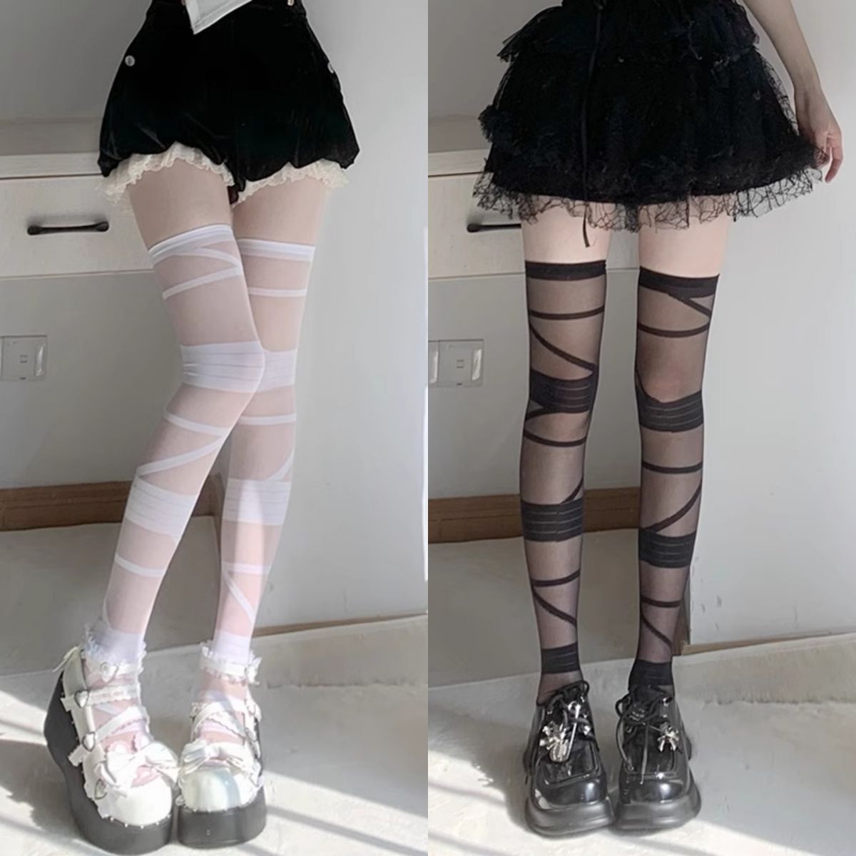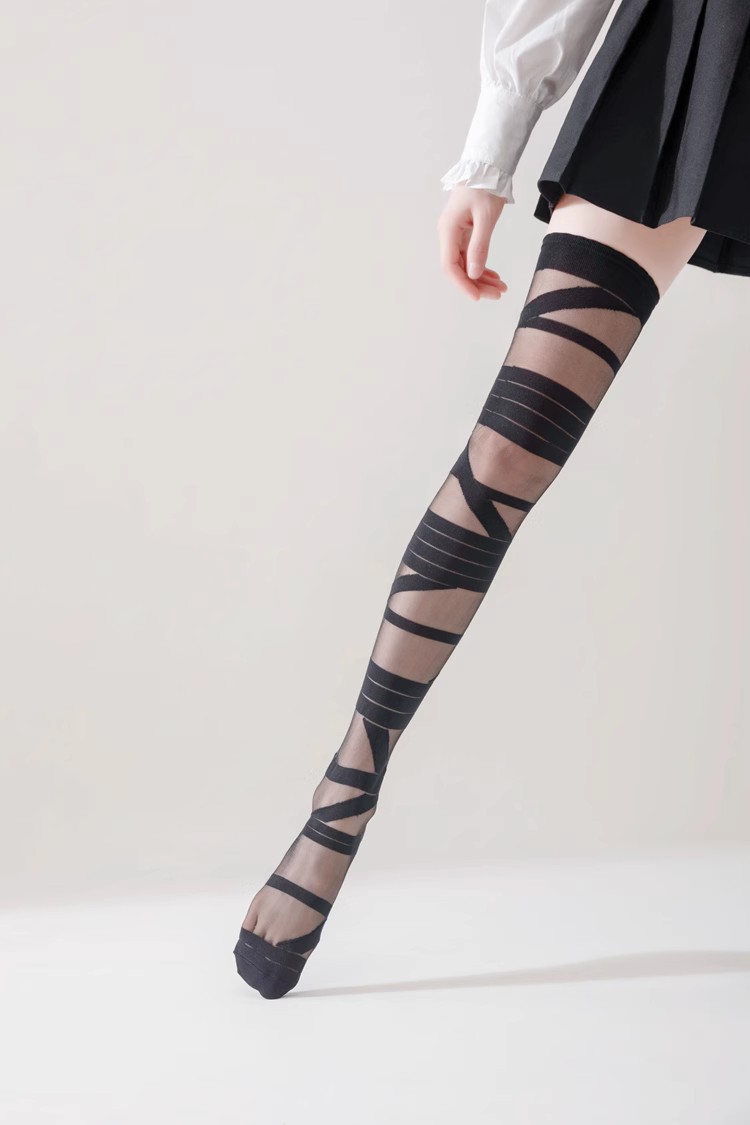 로리타 무릎 스트랩 달콤한 스타킹 무릎 얇은 y2k 뜨거운 소녀 붕대 화이트 실크 jk 송아지 양말 어린이스토어 가기